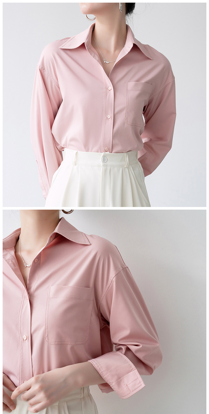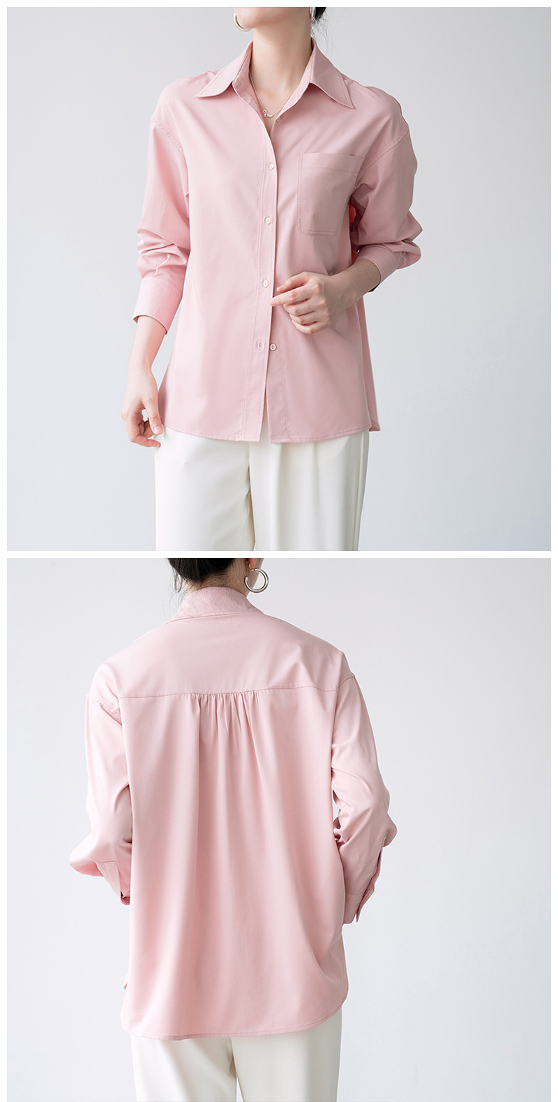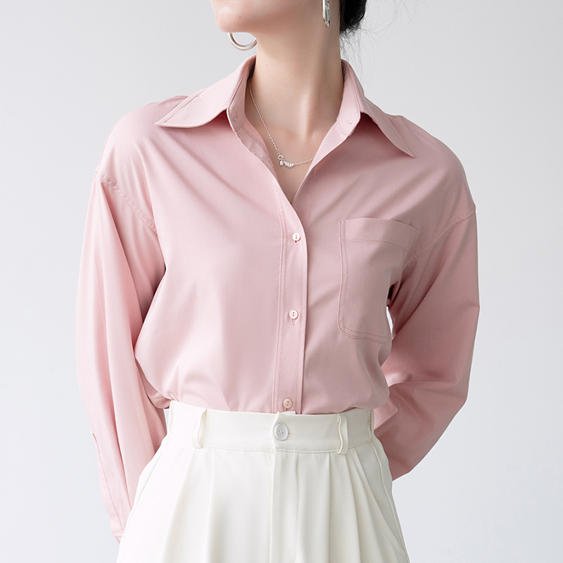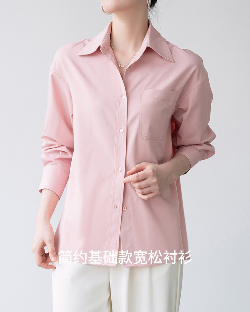 25 가을 겨울 여성용 기본 심플 캐주얼 핑크 셔츠, 루즈, 슬림, 드레이프, 주름 방지, 다림질 없음, 다용도 셔츠