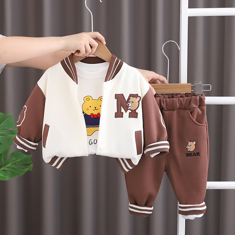 아기 옷 어린이 새 가을 만화 야구 세트 긴팔 세 조각 세트 남자 아기 소매 봄과 가을 세트 트렌디스토어 가기