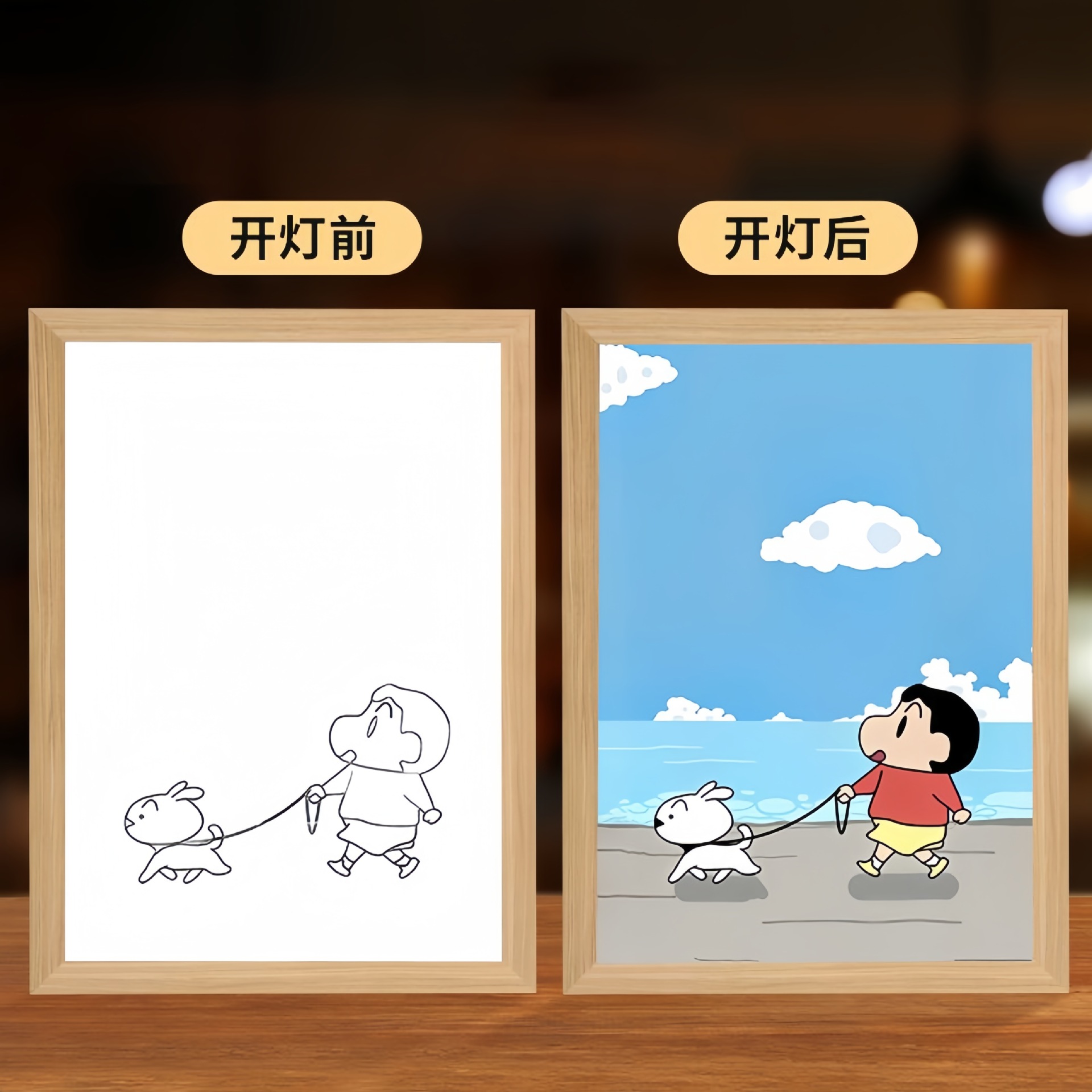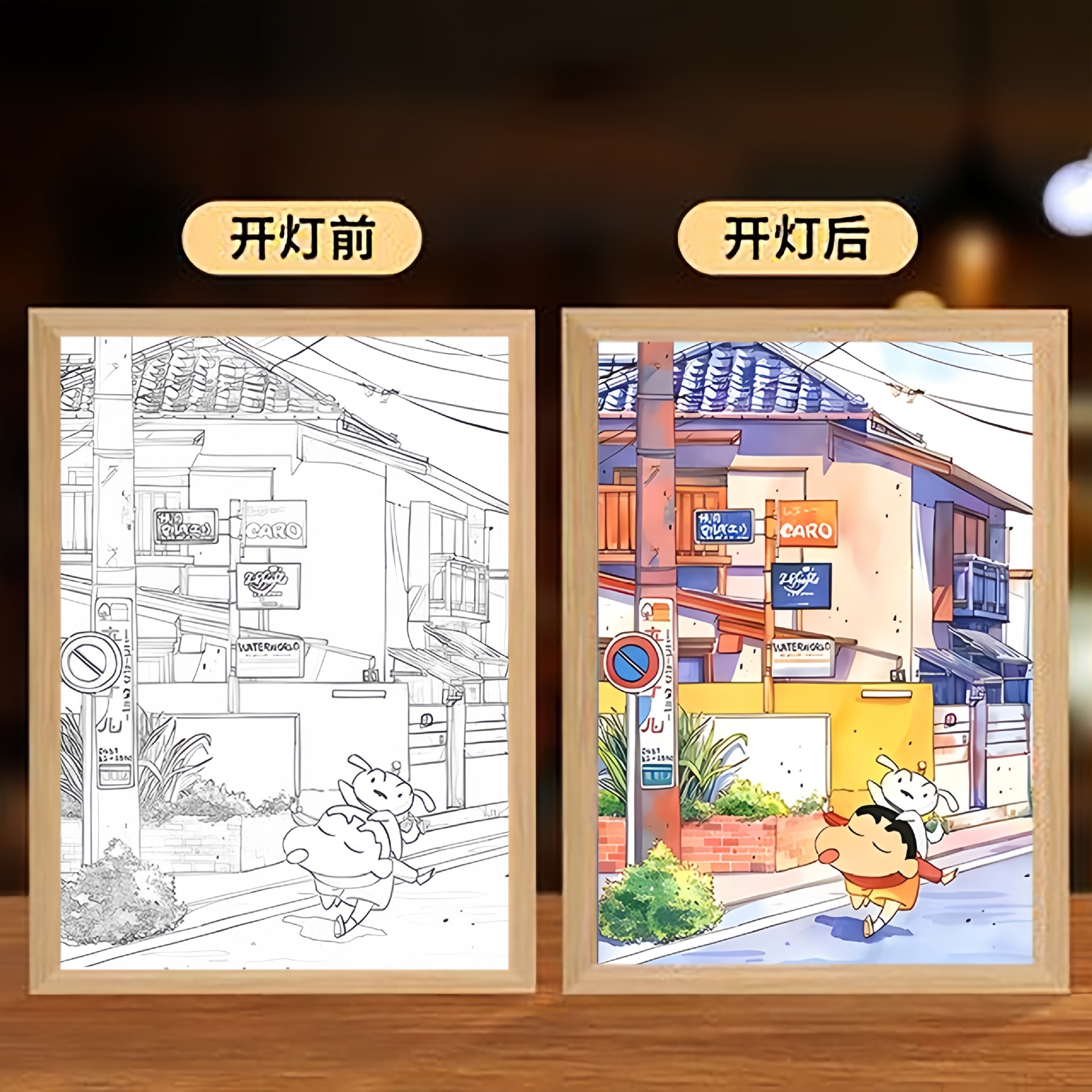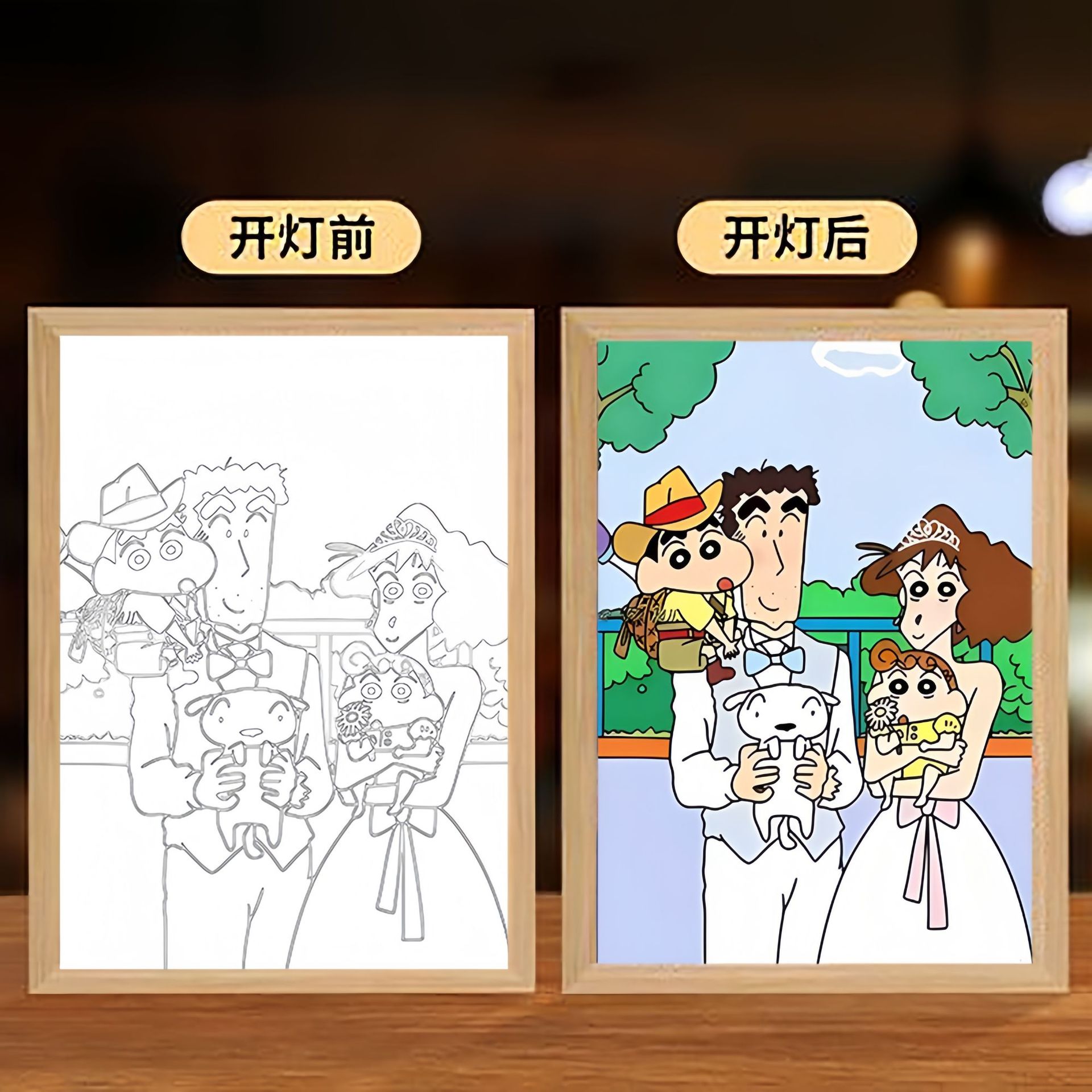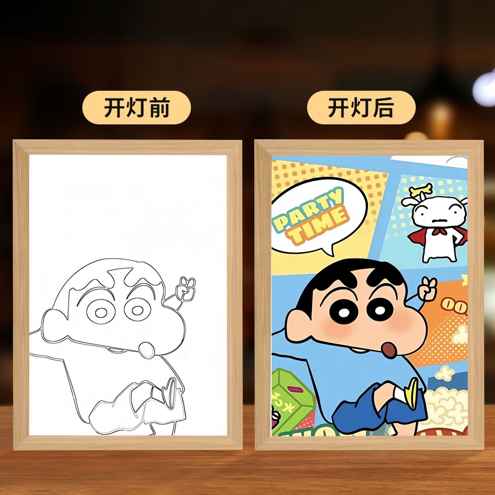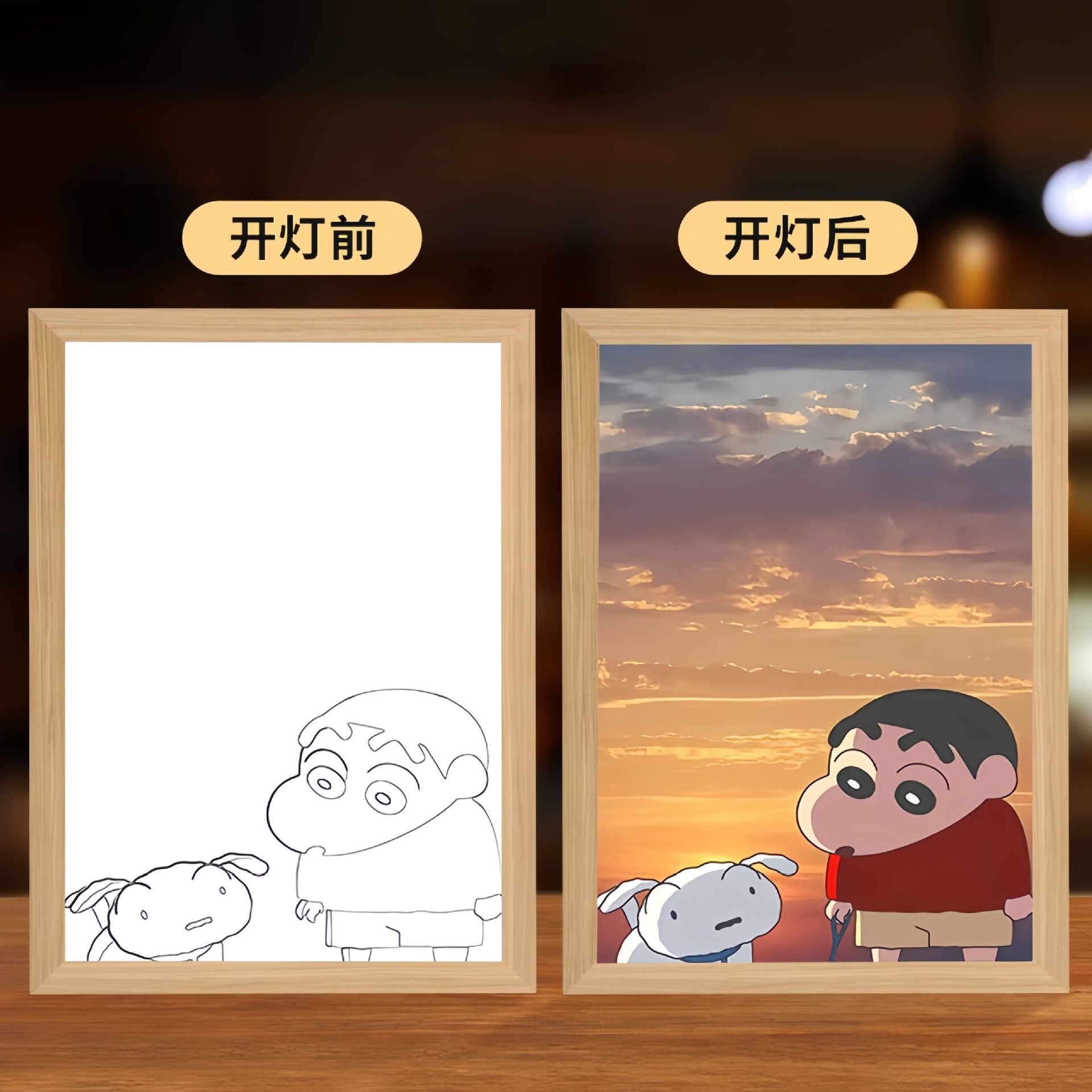 크레용 작은 새로운 조명 그림 공장 도매 조명 그림 그물 붉은 장식 그림 밤 빛 창조적 인 사진 프레임 테이블 선물