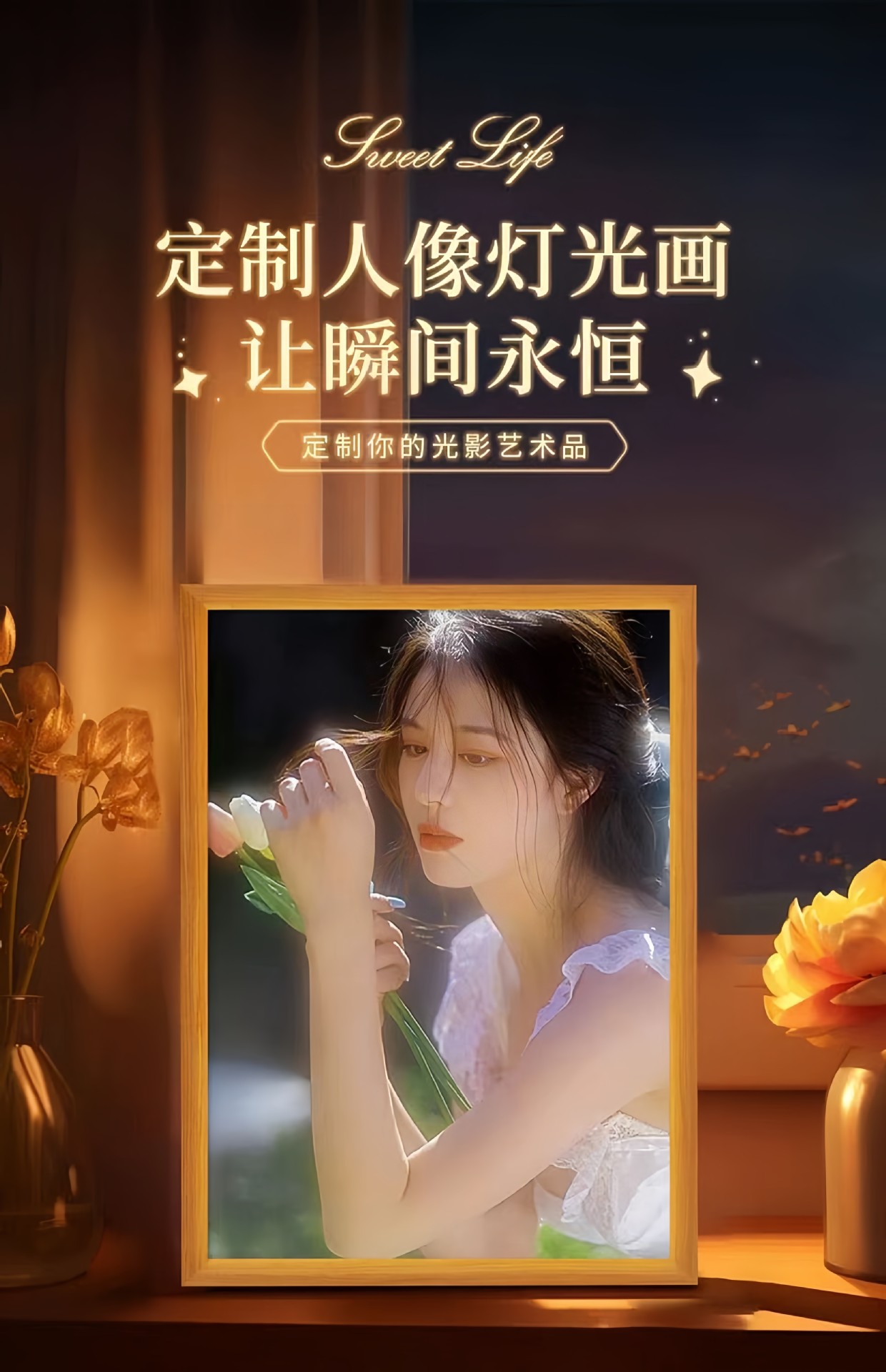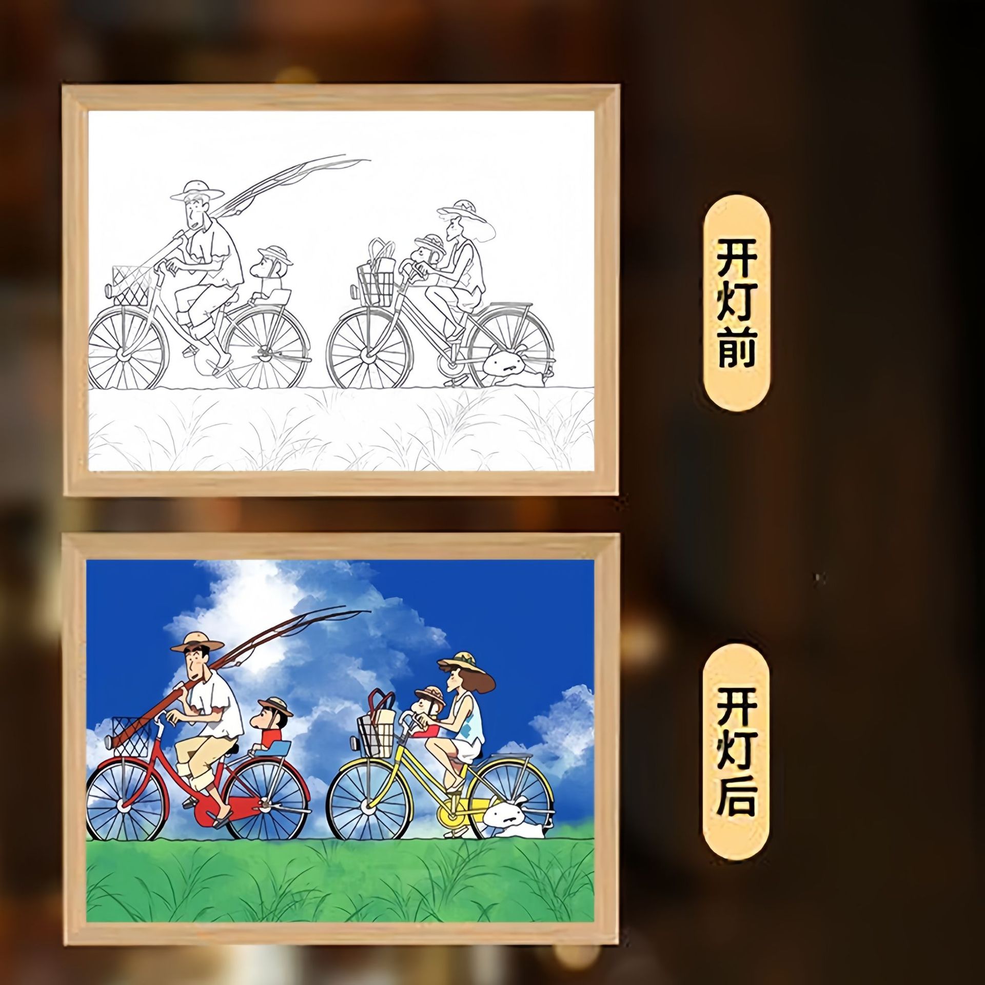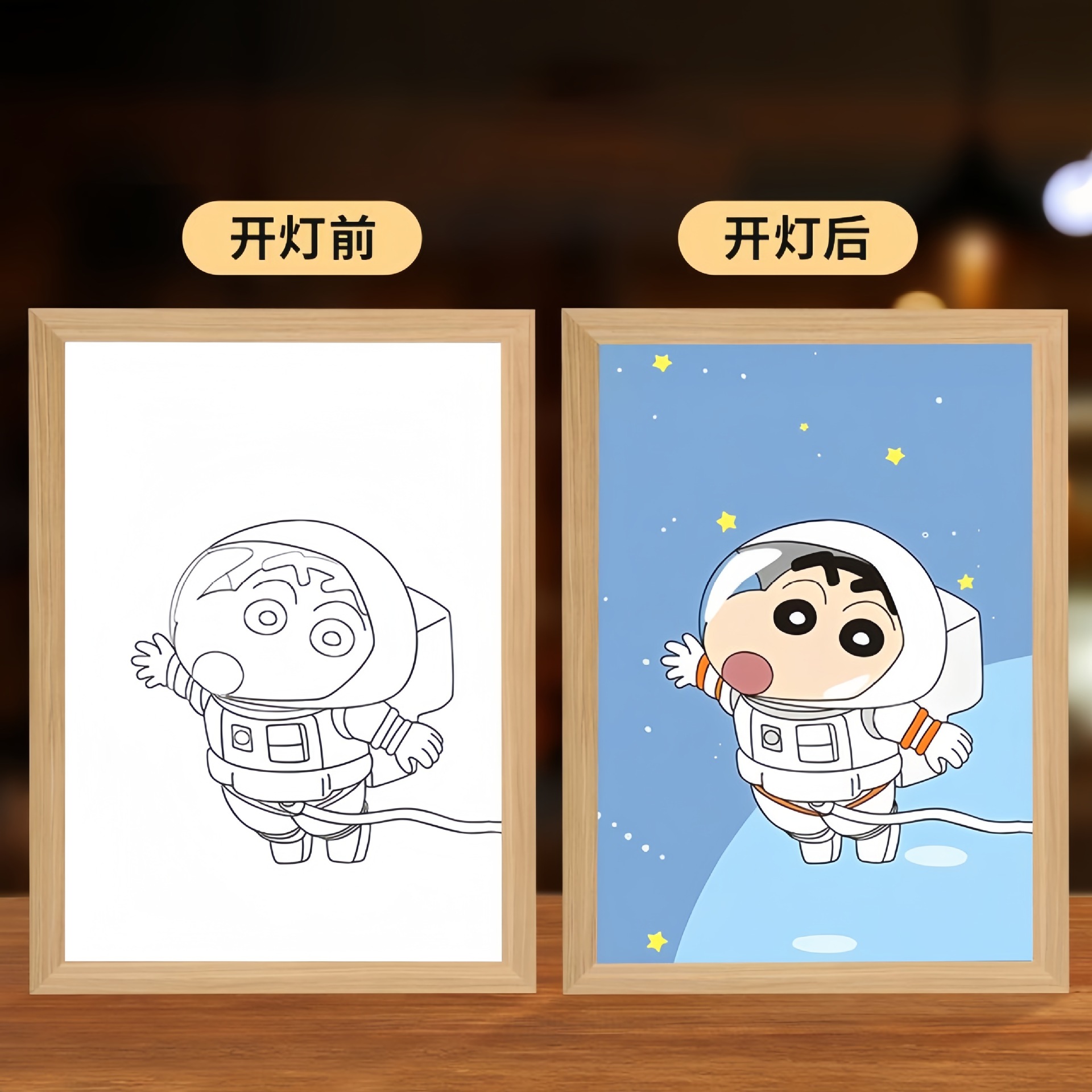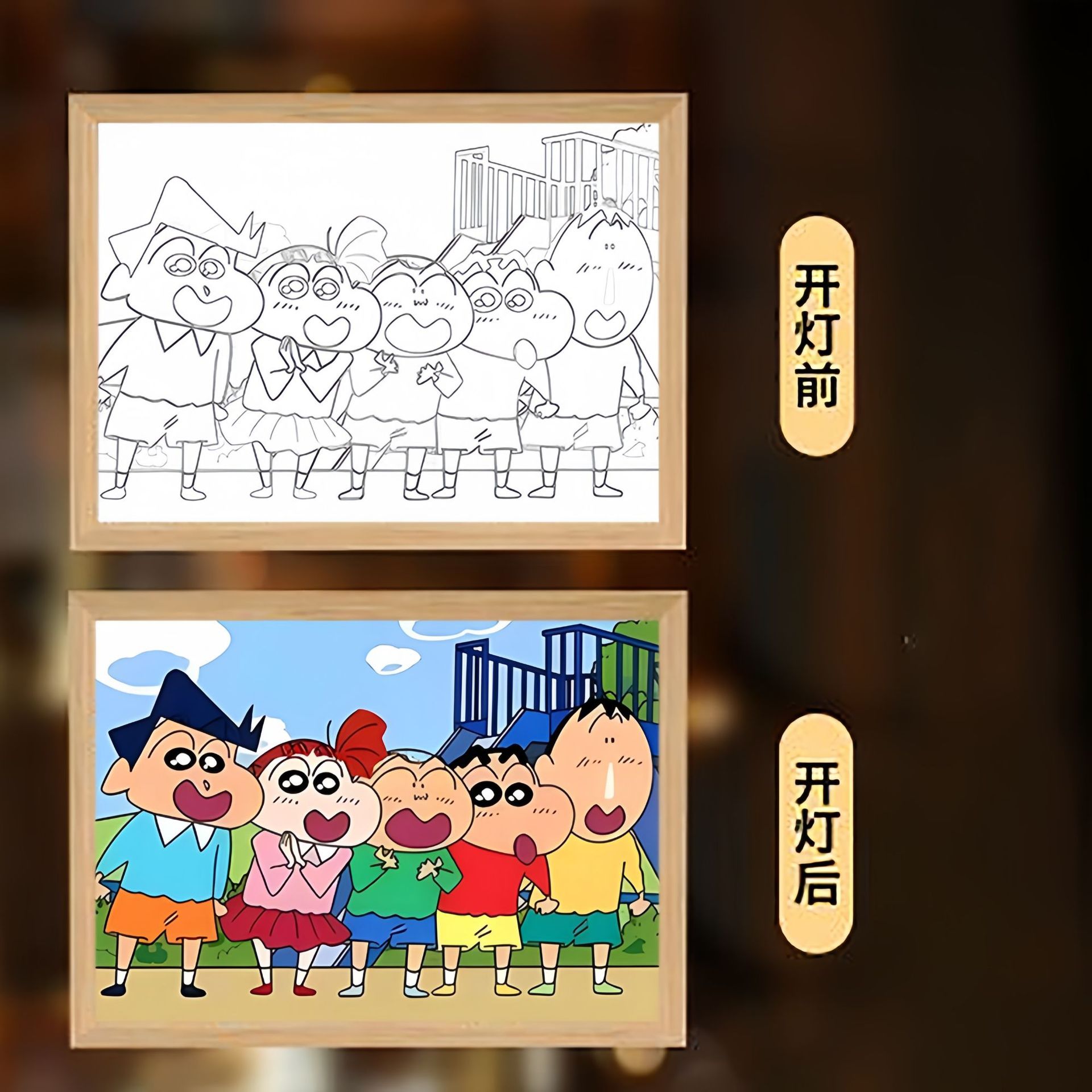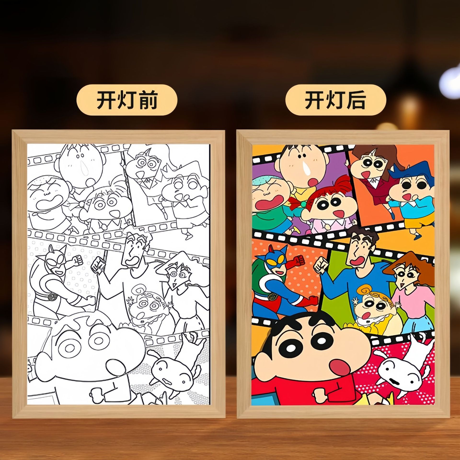 크레용 작은 새로운 조명 그림 공장 도매 조명 그림 그물 붉은 장식 그림 밤 빛 창조적 인 사진 프레임 테이블 선물