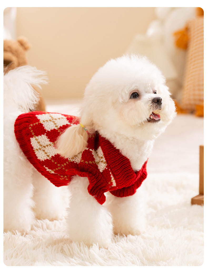벚꽃 마름모꼴 개 스웨터 가을과 겨울 두꺼운 따뜻한 요크셔 곰 비행 소매 작은 개 고양이 애완 동물 옷
