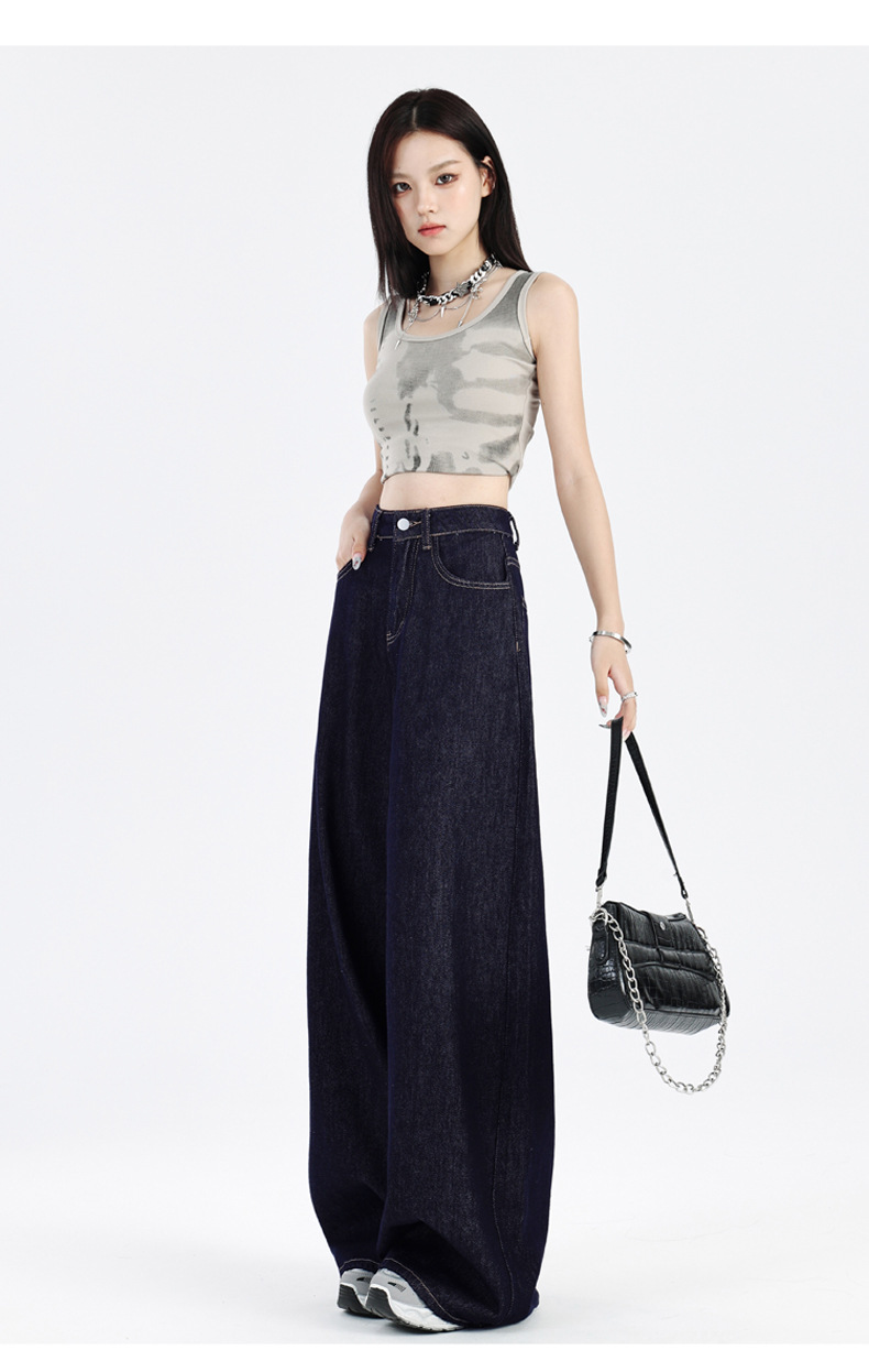 가을과 겨울 다크 블루 미국의 넓은 다리 청바지 여성의 높은 허리 슬리밍 작은 직선 바지 그림 컬러 9 포인트 스판덱스스토어 가기