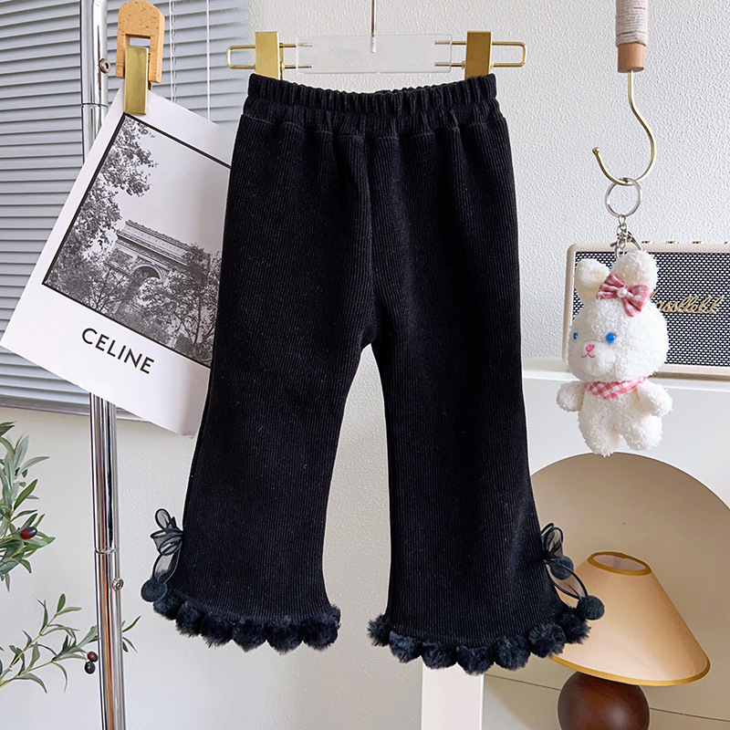 여자 모피 볼 활 넓은 다리 바지 가을과 겨울 새로운 도착 한국 스타일 레이스 기모 두꺼운 스트레이트 바지스토어 가기