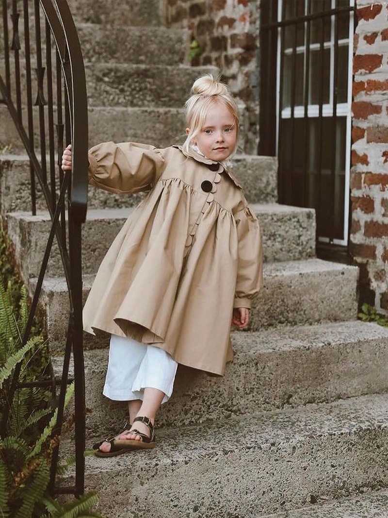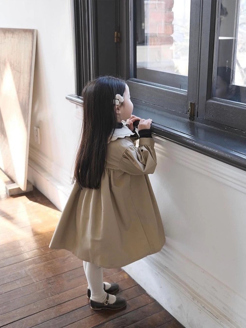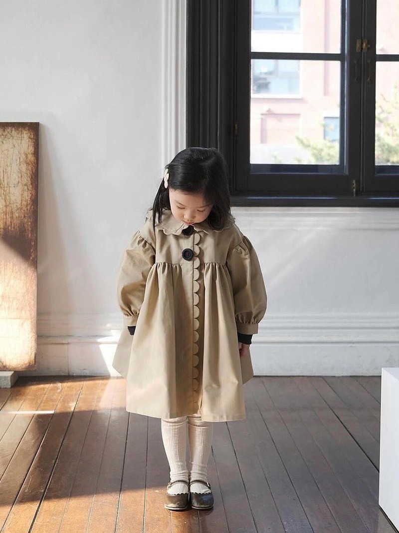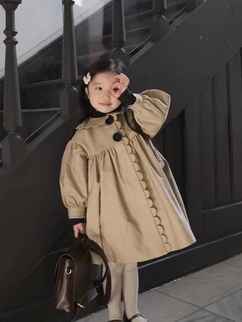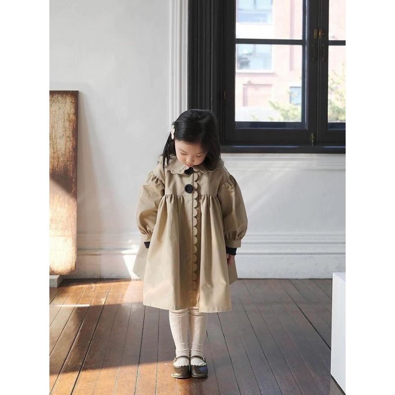 24 소녀 가을과 겨울 새로운 트렌치 코트 세련된 복고풍 코트 세련된 인형 칼라 수제 레이스 코트스토어 가기