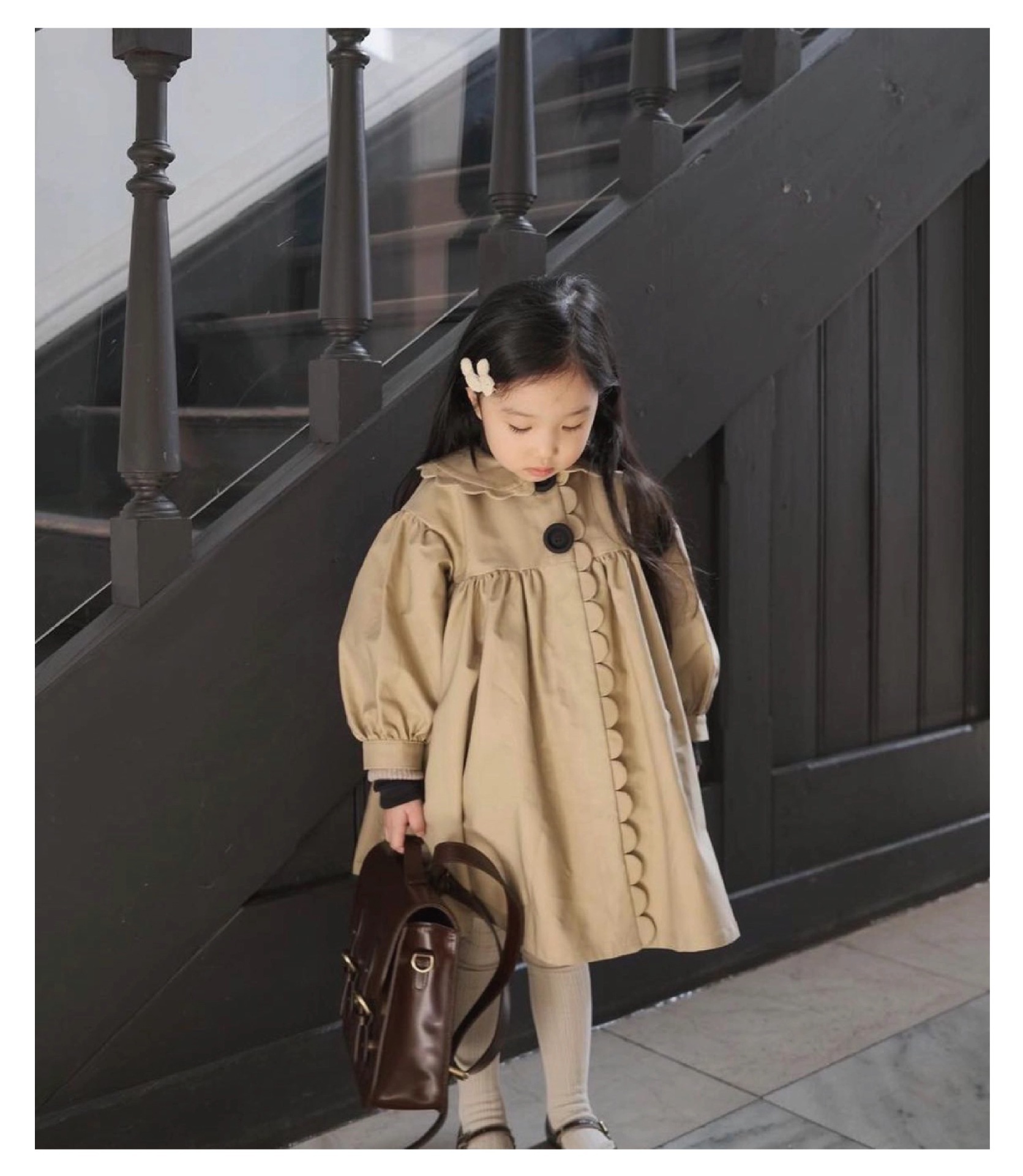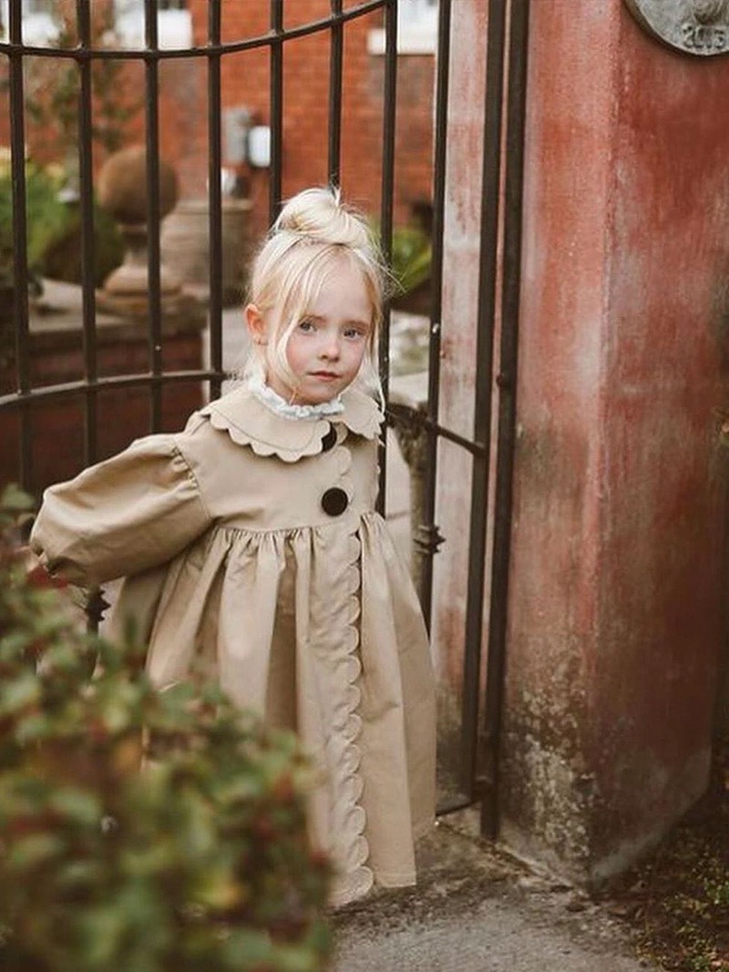 24 소녀 가을과 겨울 새로운 트렌치 코트 세련된 복고풍 코트 세련된 인형 칼라 수제 레이스 코트