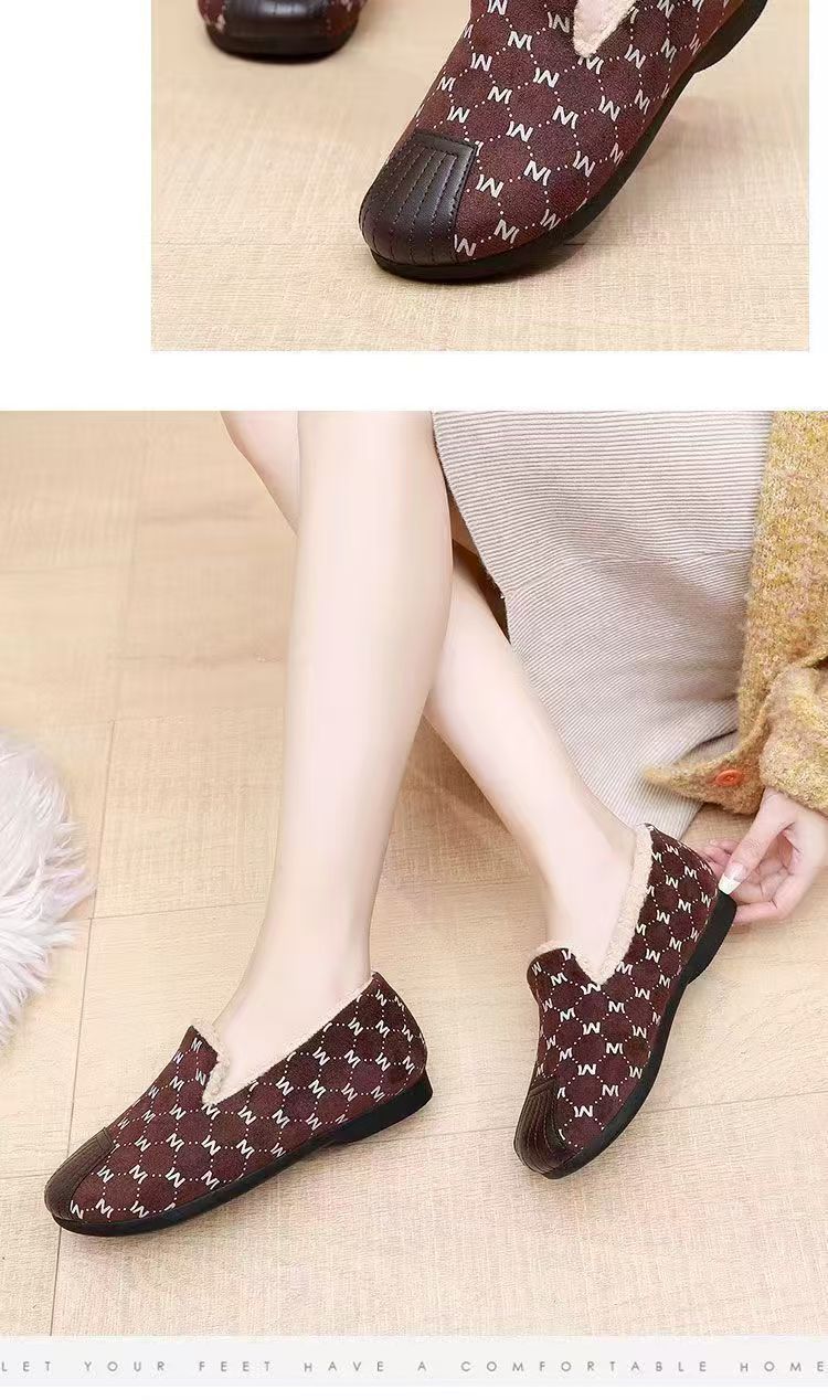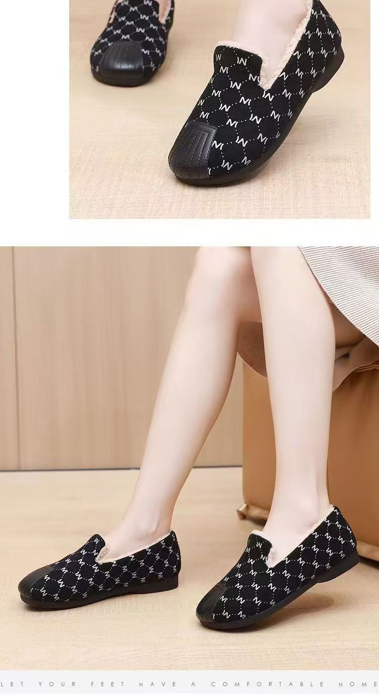 기모 소프트 단독 캐주얼 슈즈 여성의 2024 새로운 겨울 두꺼운 따뜻한 코튼 슈즈 슬립 온 올 매치 슈즈 여성용