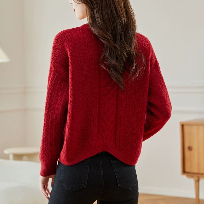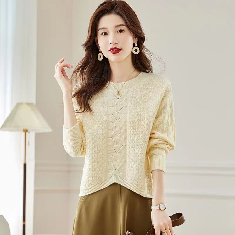 2024 새로운 봄과 가을 짧은 슈퍼 니스 스웨터베이스 셔츠 여성용 루즈 독특한 세련된 아름다운 니트 셔츠 탑스토어 가기