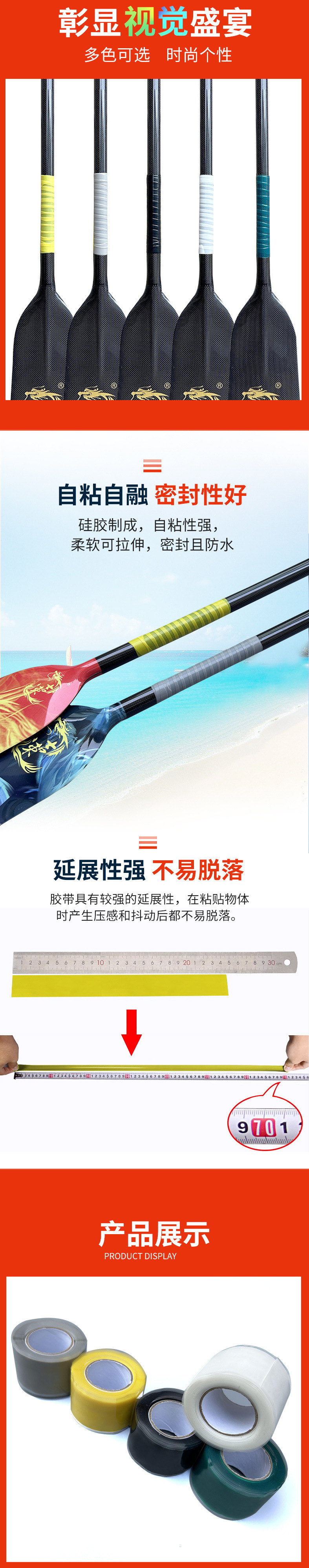 드래곤 보트 패들 미끄럼 방지 실리콘 자기 접착 테이프 카약 패들 미끄럼 방지 고무 패들 그립 Jitsu 탄소 섬유 드래곤 보트 패들 커버
