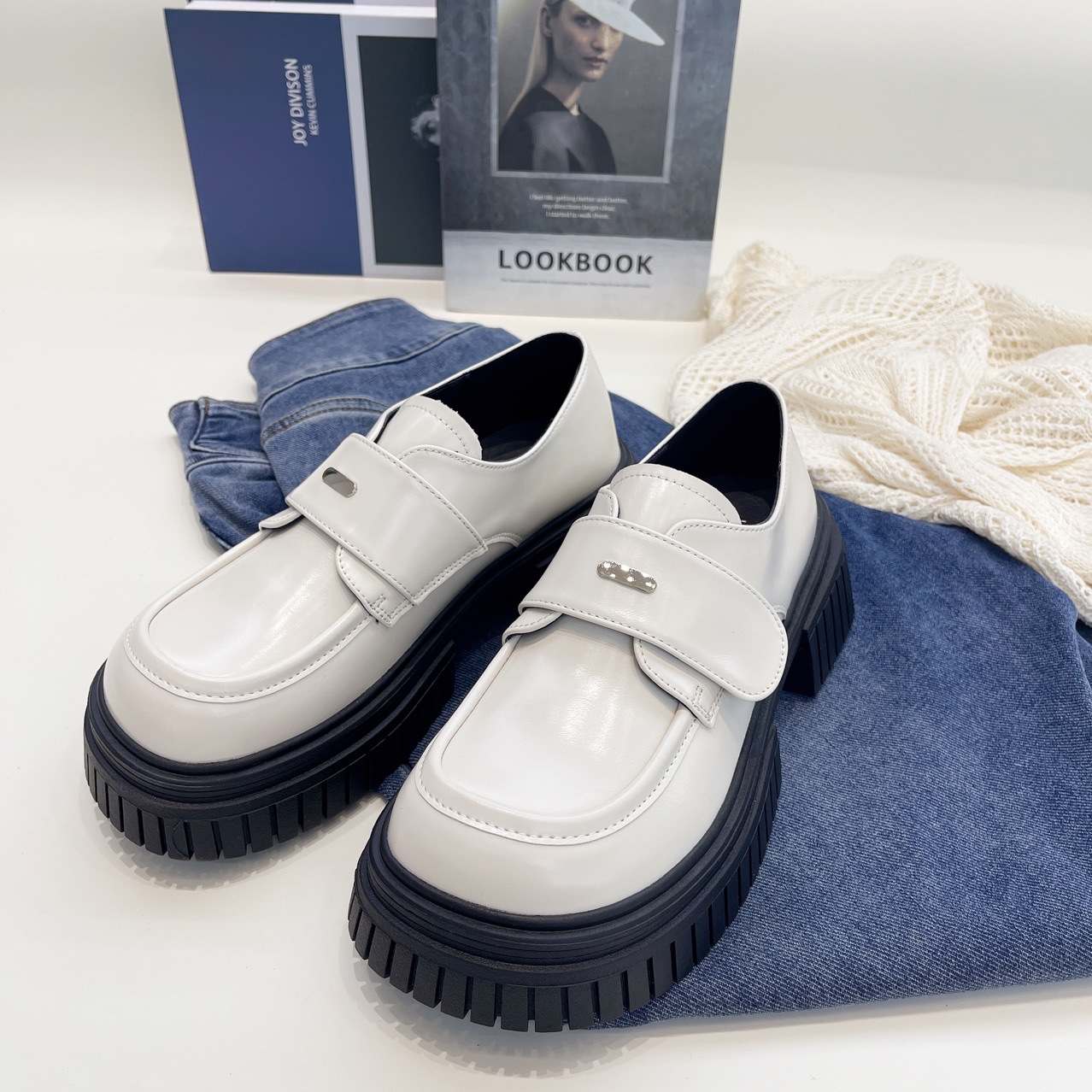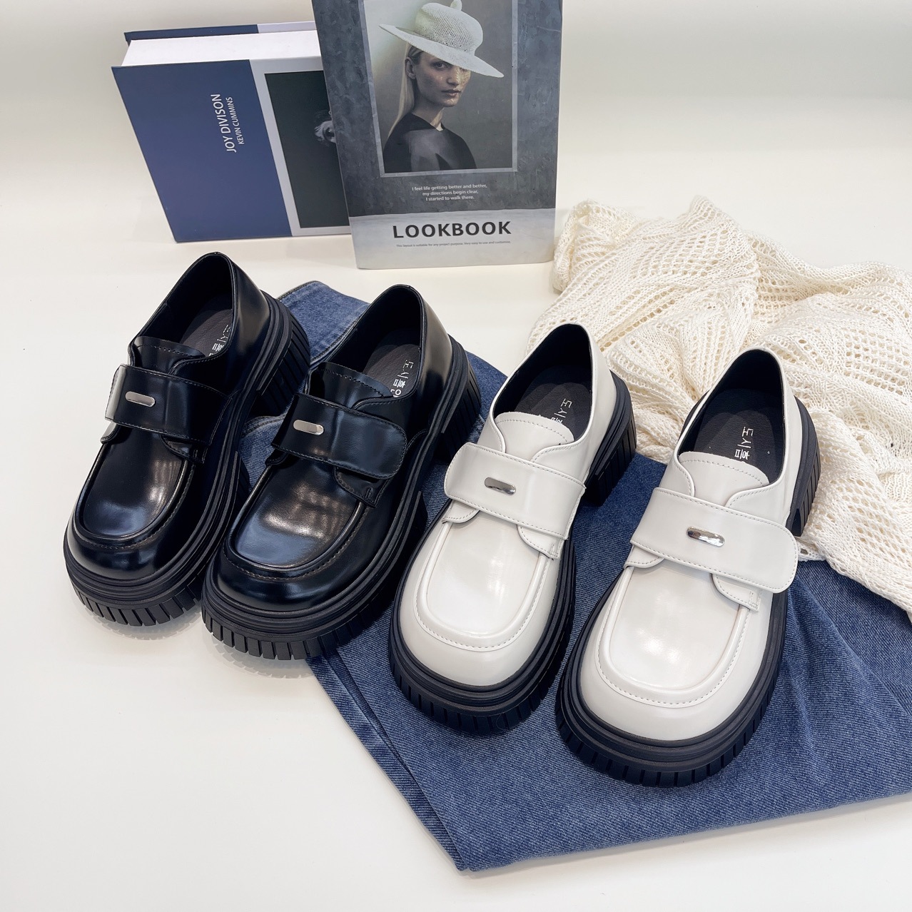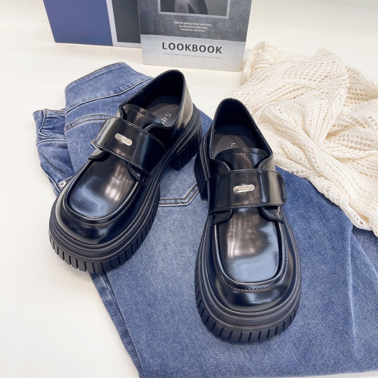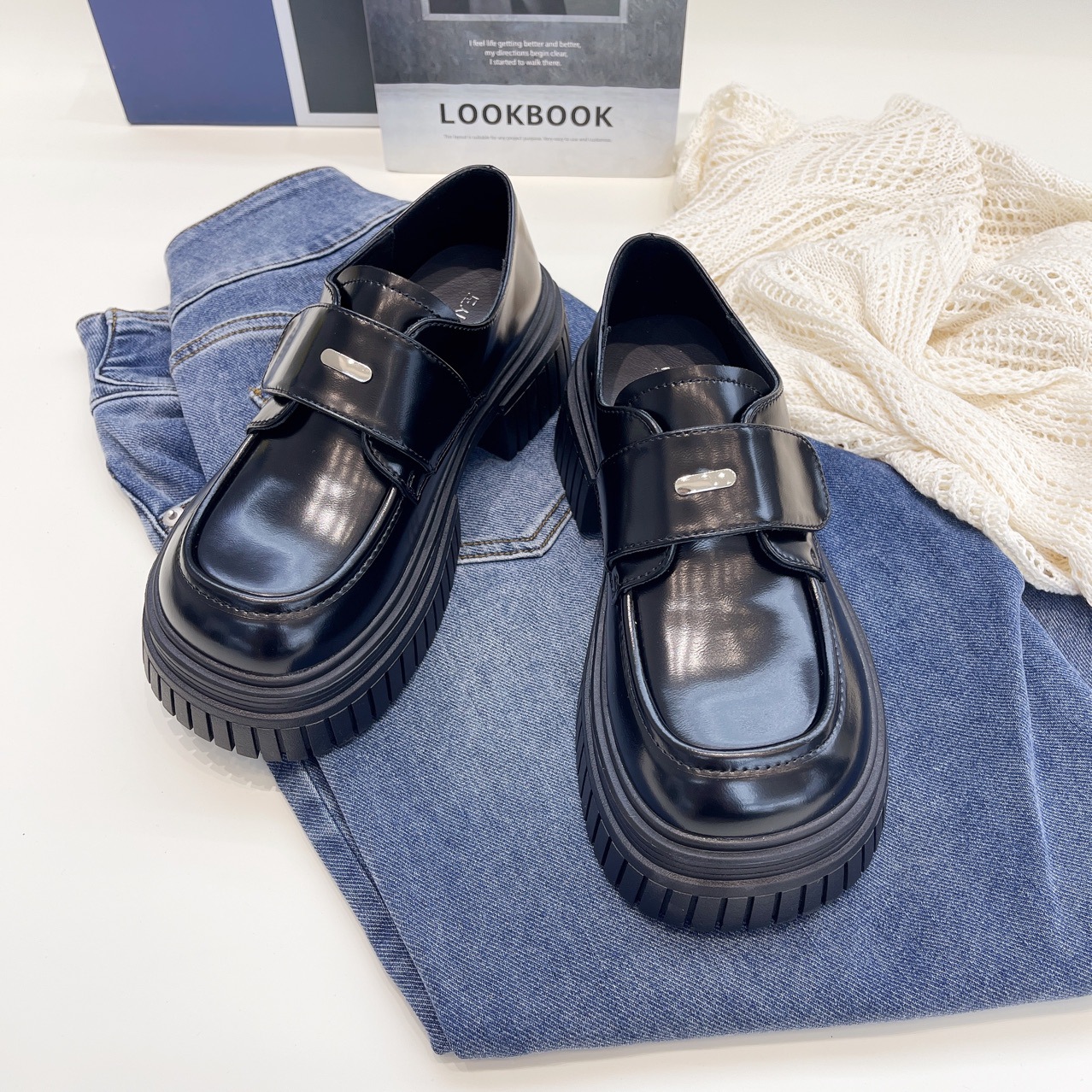 나비 O 작은 가죽 신발 여자의 얕은 입 두꺼운 바닥 증가 2024 봄 새로운 영국 스타일 작은 패션 유니폼 신발스토어 가기