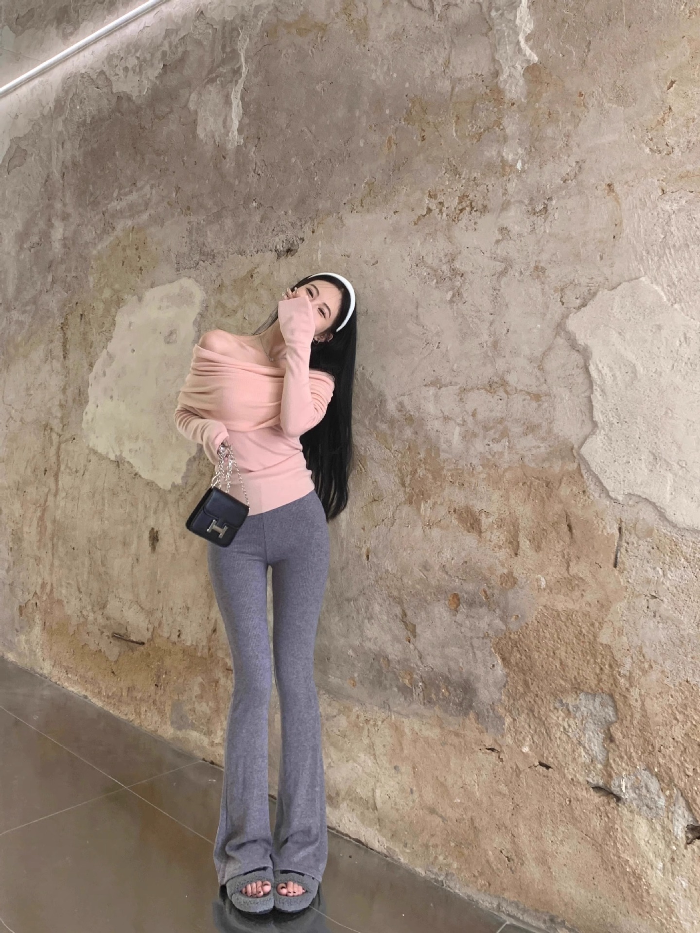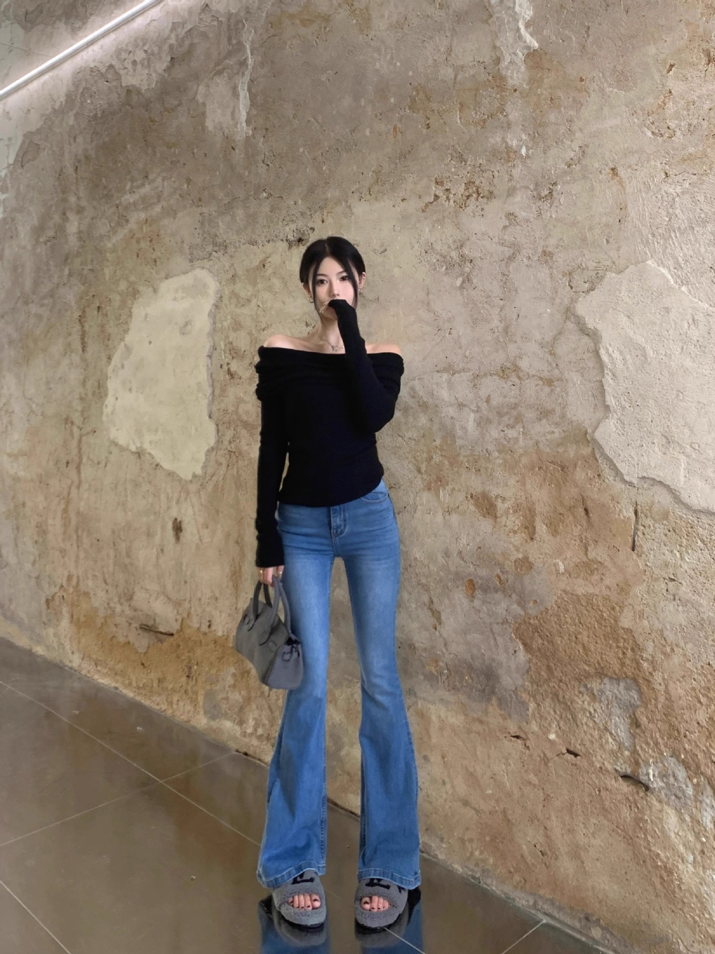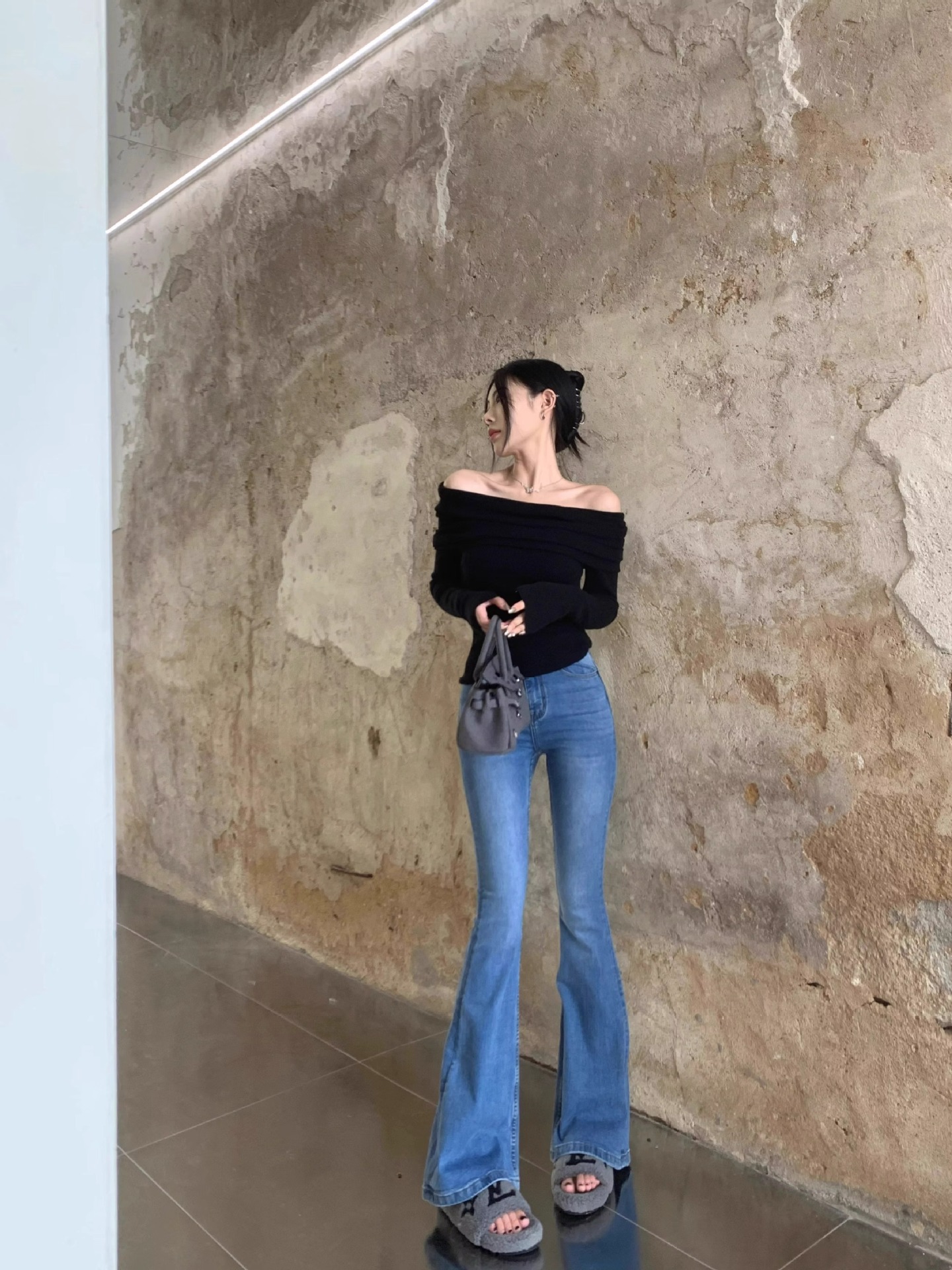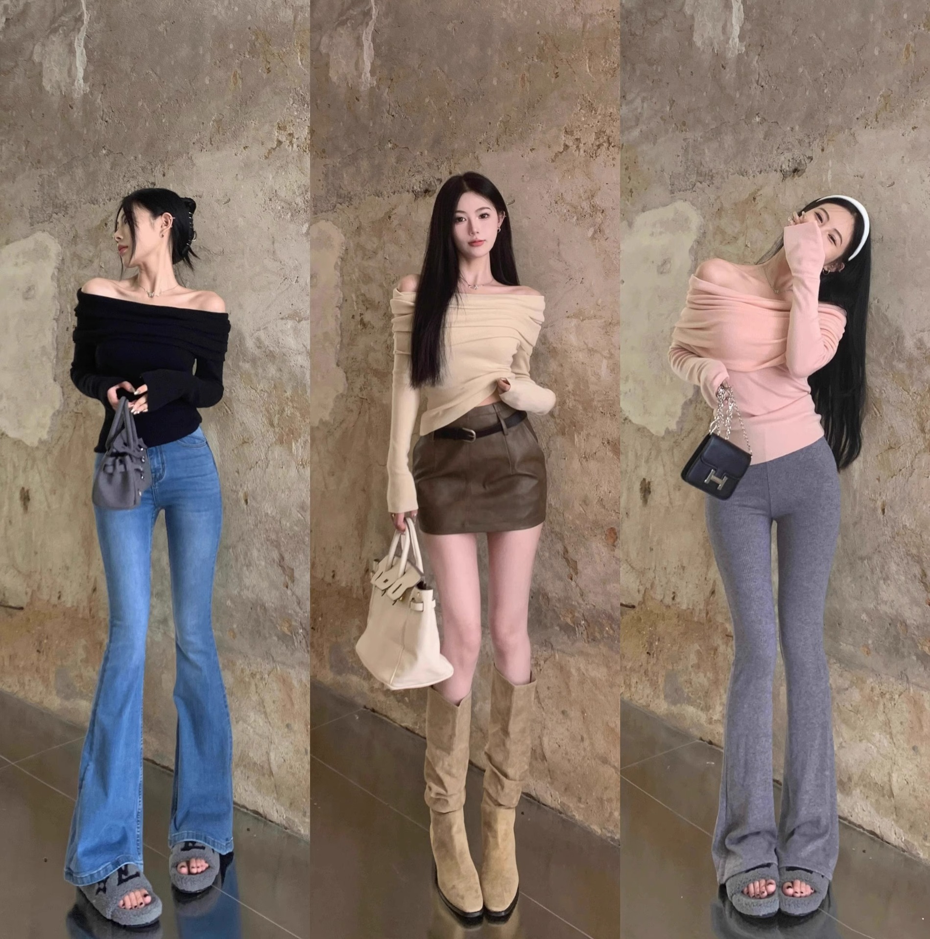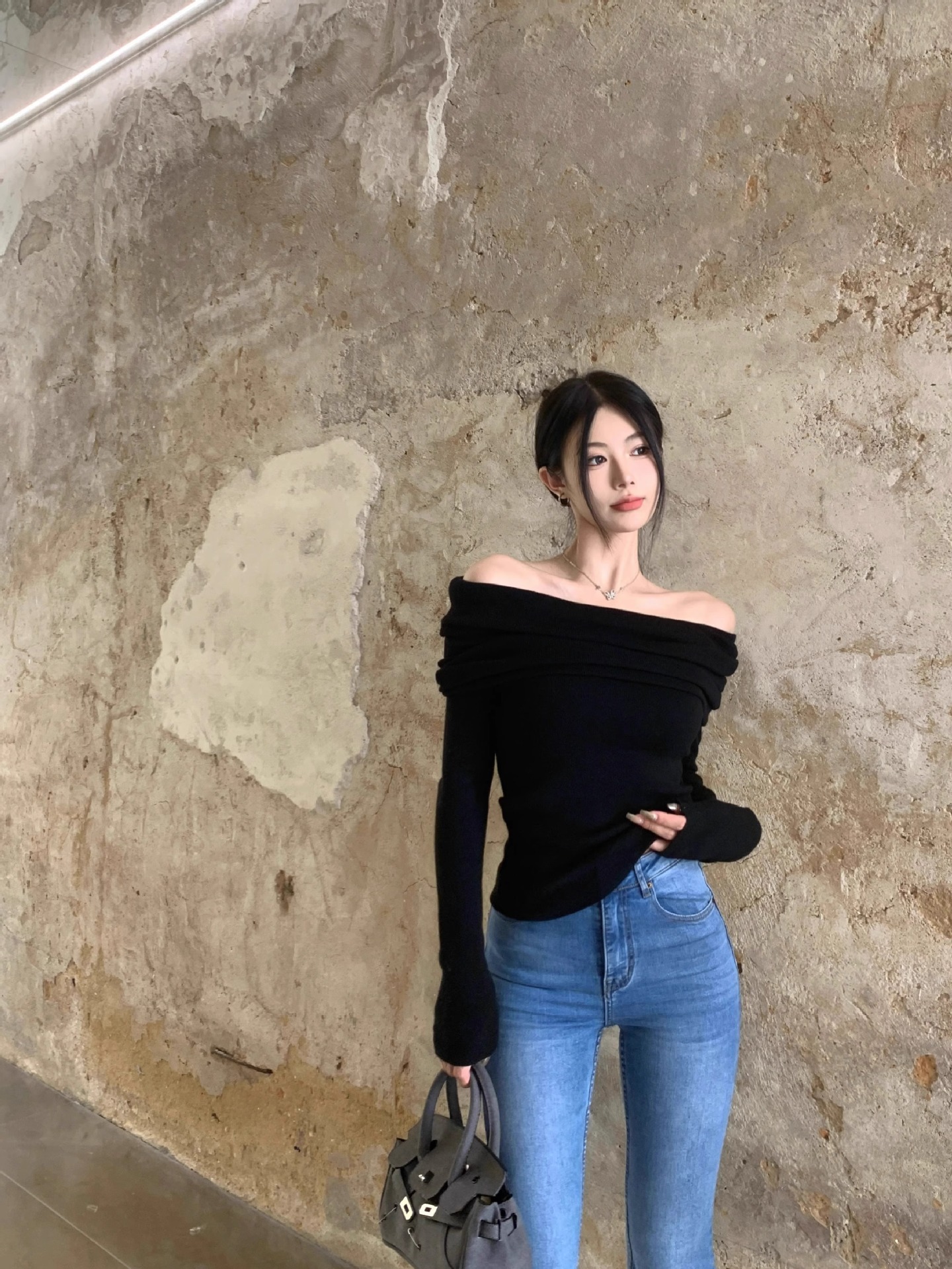 순수한 욕망 어깨 쇄골 긴팔 어깨 니트 스웨터 여성의 봄과 가을 칼라베이스 셔츠 아우터 탑스토어 가기