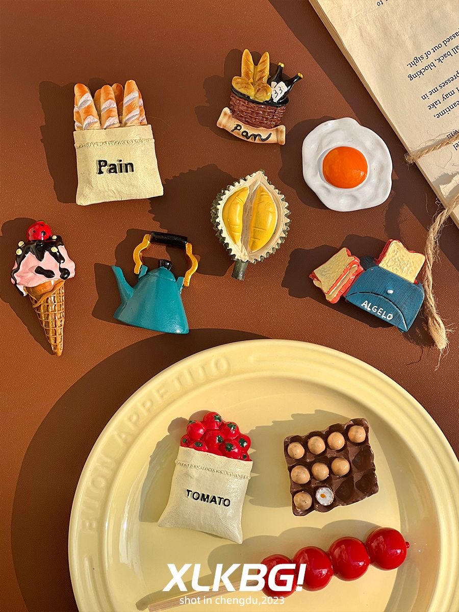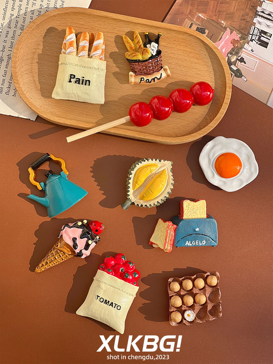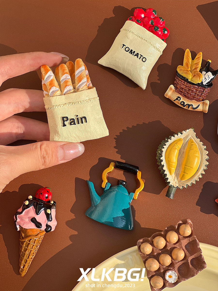 창조적 인 3D 냉장고 스티커 시뮬레이션 음식 귀여운 자기 스티커 메시지 스티커 장식 3 차원 수지 자석 스티커스토어 가기