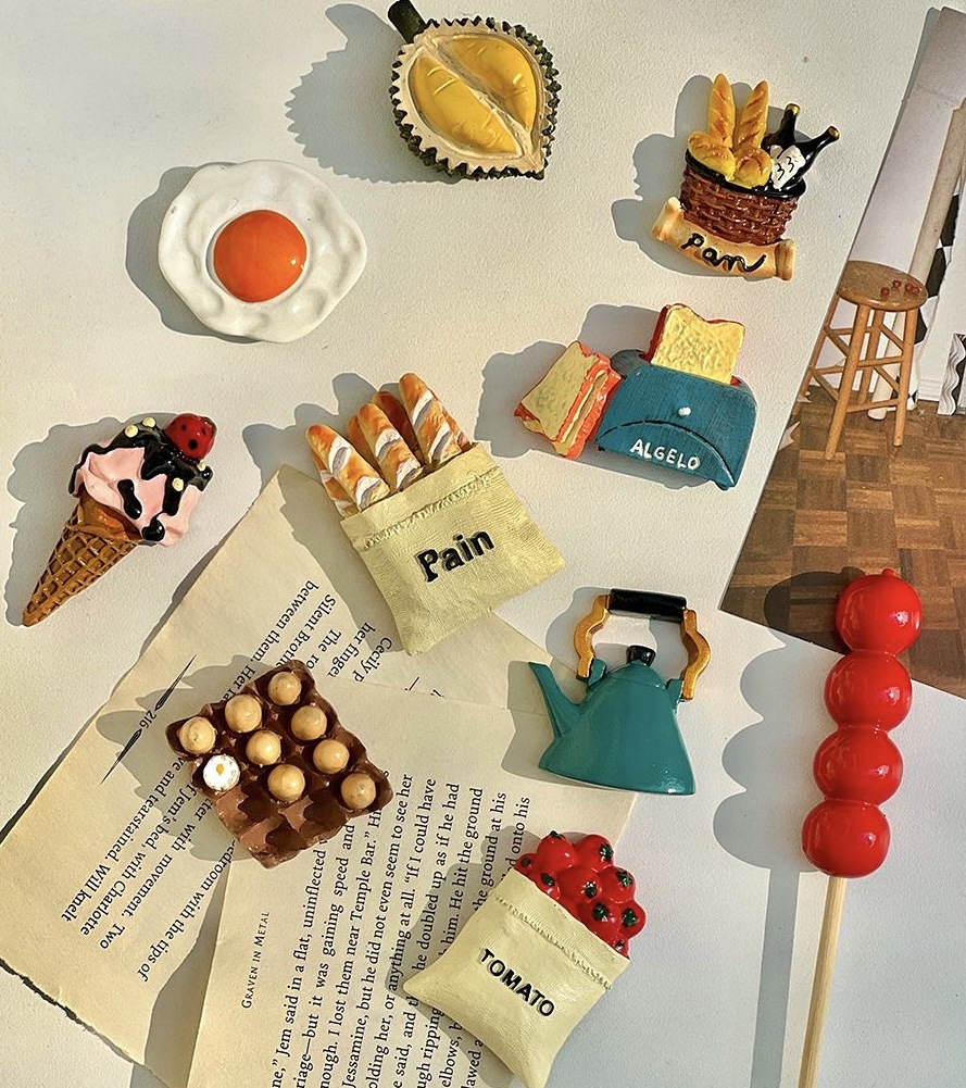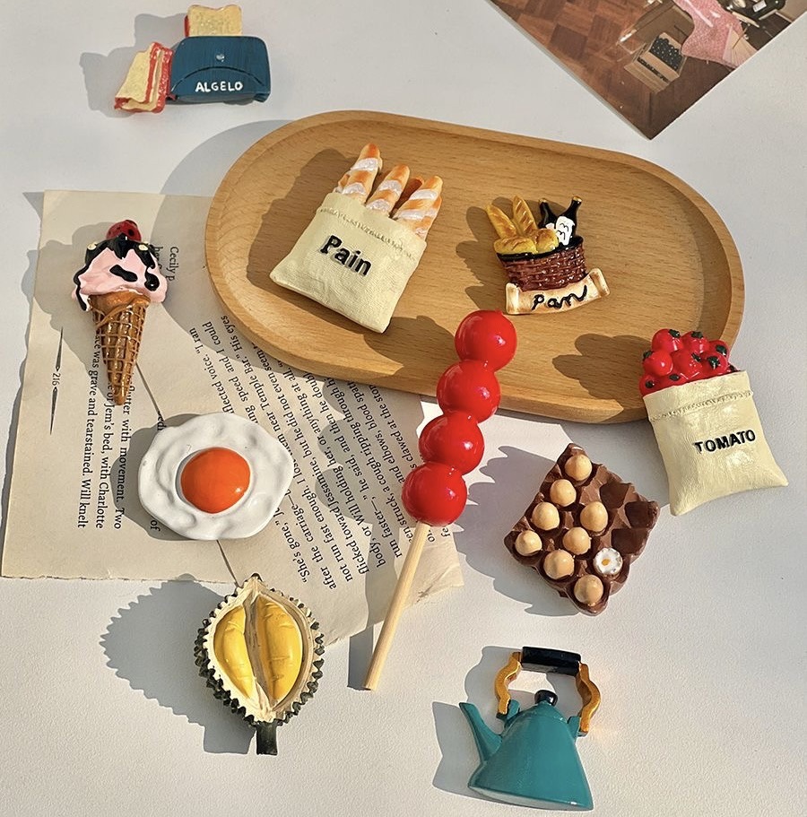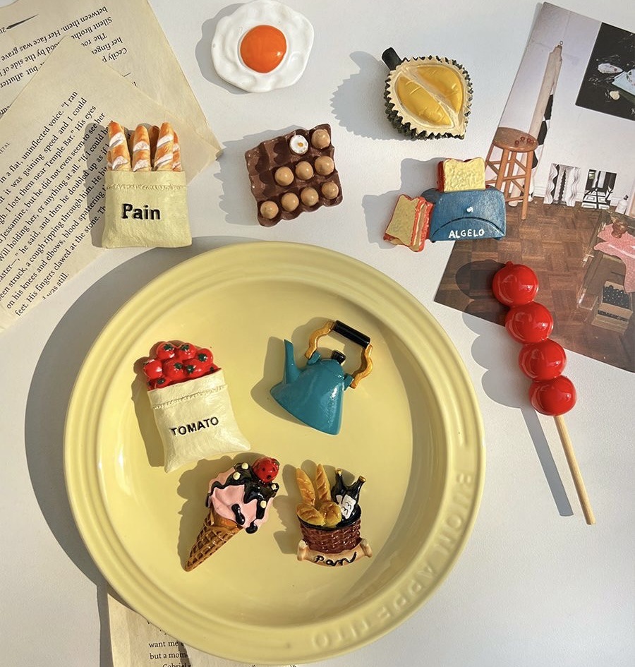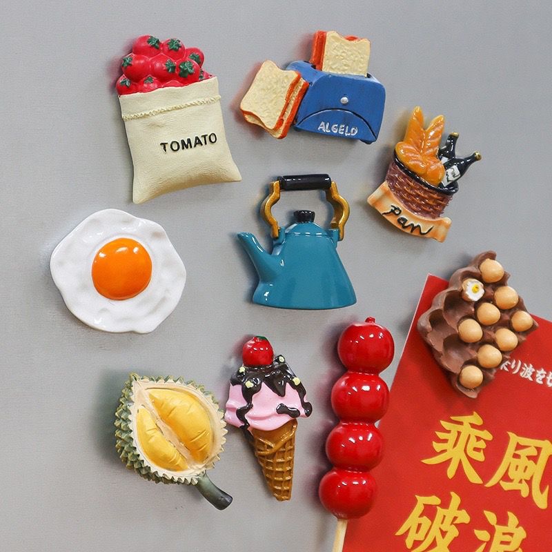 창조적 인 3D 냉장고 스티커 시뮬레이션 음식 귀여운 자기 스티커 메시지 스티커 장식 3 차원 수지 자석 스티커스토어 가기