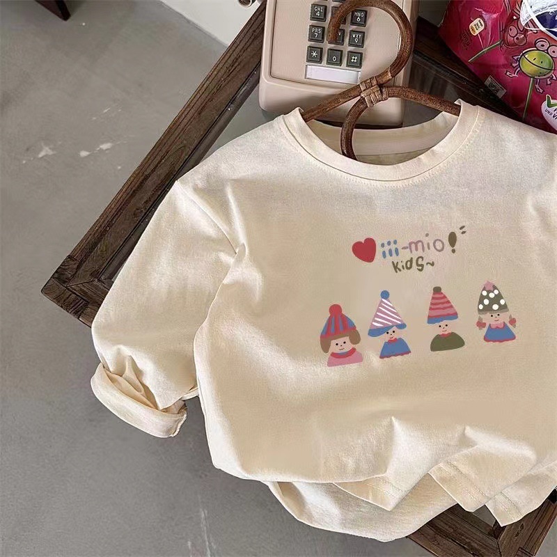 100 면 어린이 긴 소매 티셔츠 가을 새로운 도착 소녀 아기 어린 소녀 인쇄 공주 스타일 반 소매 탑 T