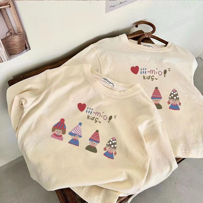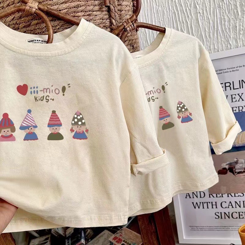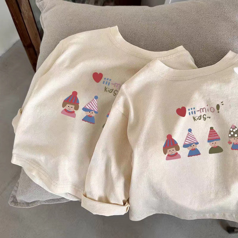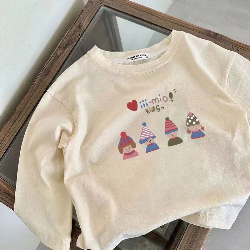 100 면 어린이 긴 소매 티셔츠 가을 새로운 도착 소녀 아기 어린 소녀 인쇄 공주 스타일 반 소매 탑 T스토어 가기