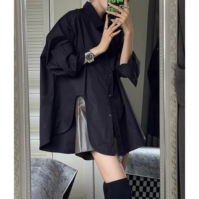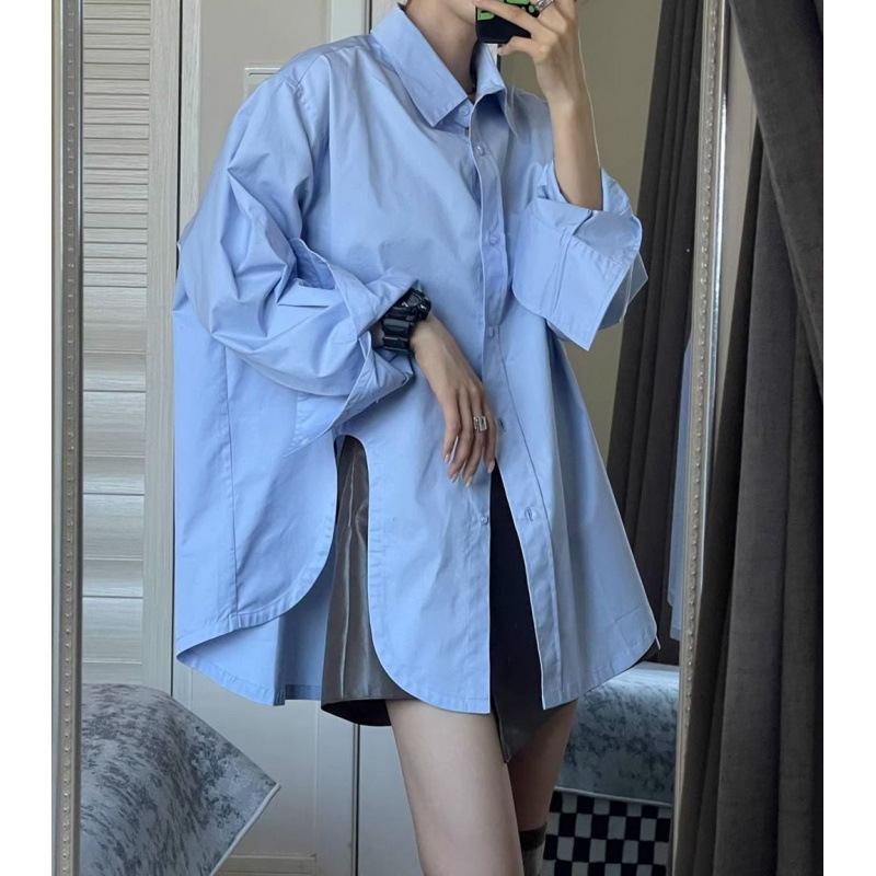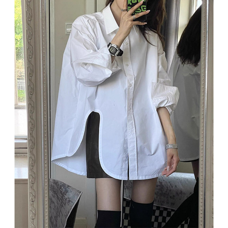 2026년 가을 신상 화이트 골지 셔츠 여성용 한국 스타일 레이지 스타일 루즈핏 디자인 셔츠 아우터웨어스토어 가기