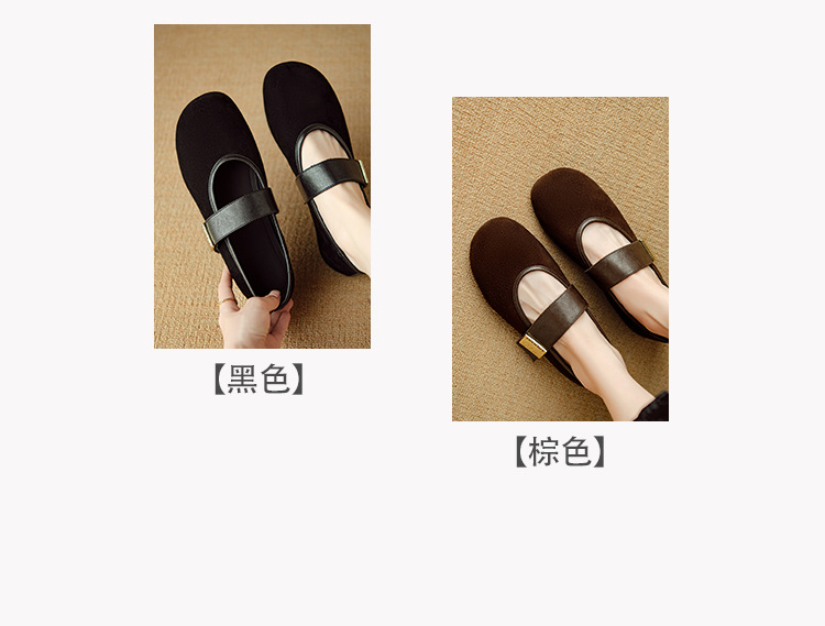 둥근 발가락 메리 제인 신발 여성의 2024 가을 새로운 얕은 입 플랫 신발 복고풍 다크 브라운 양 터닝 가죽 여성 신발 도매스토어 가기
