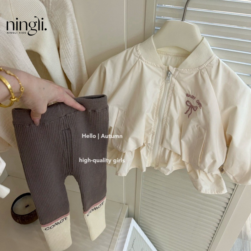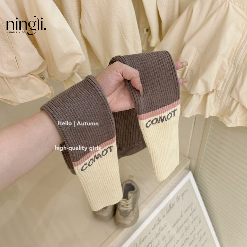 닝리 가을과 겨울 소녀 한국 아이보리 코트 아기의 컬러 매칭 니트 바지 아기 소녀 투피스 세트