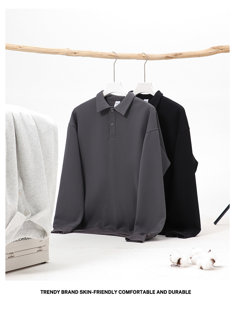 조수 브랜드 헤비급 350g 순면 POLO 칼라 조끼 남성 가을과 겨울 기본 단색 간단한 느슨한 대학 스타일 조끼스토어 가기