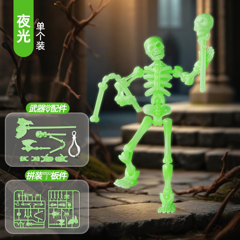 • 【스켈레톤 피규어】 야광 그린 (무기 4종 + 손 파츠 2종)