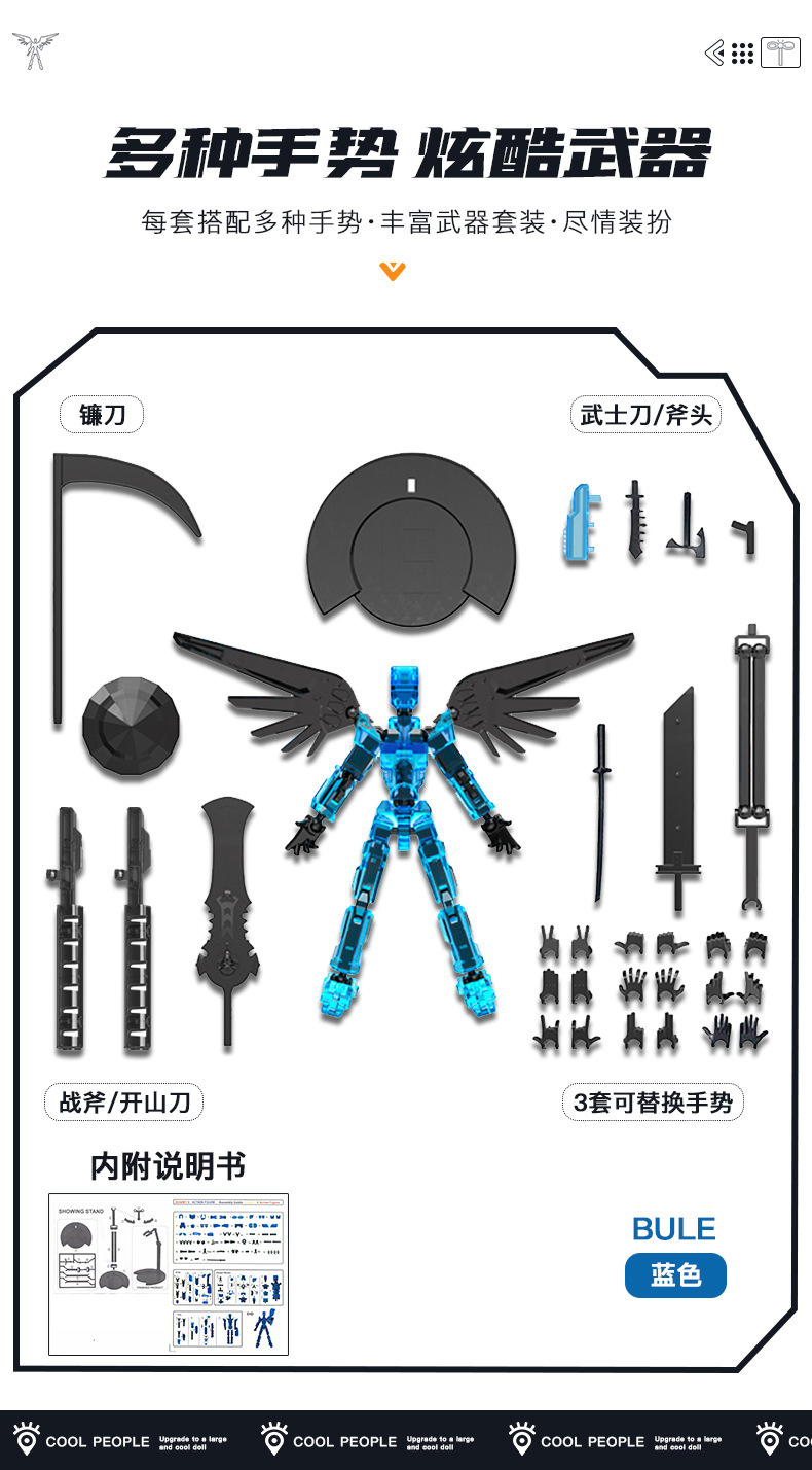 • 파란색과 검정색 [탈착식 무기 4개 + 손 3개 포함]