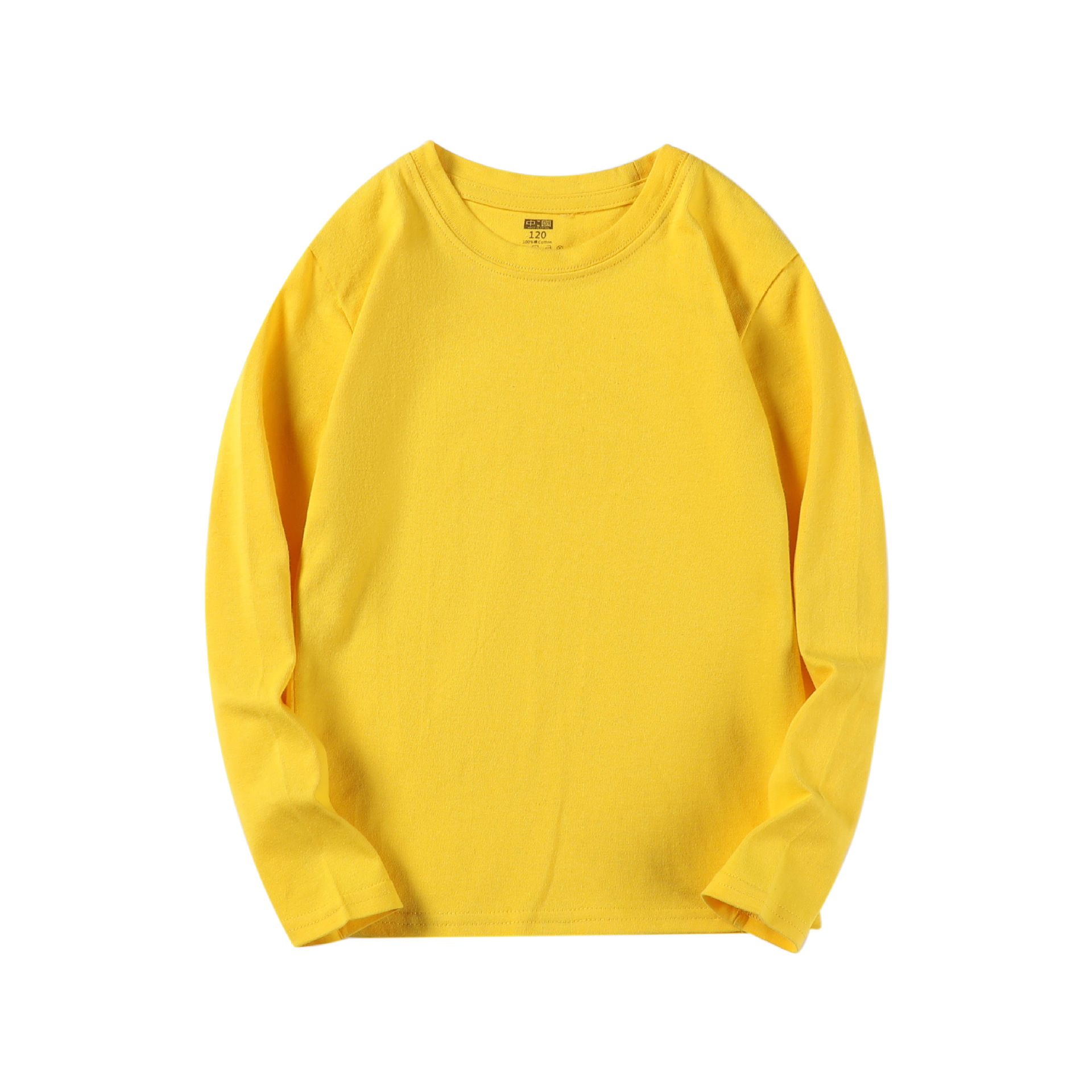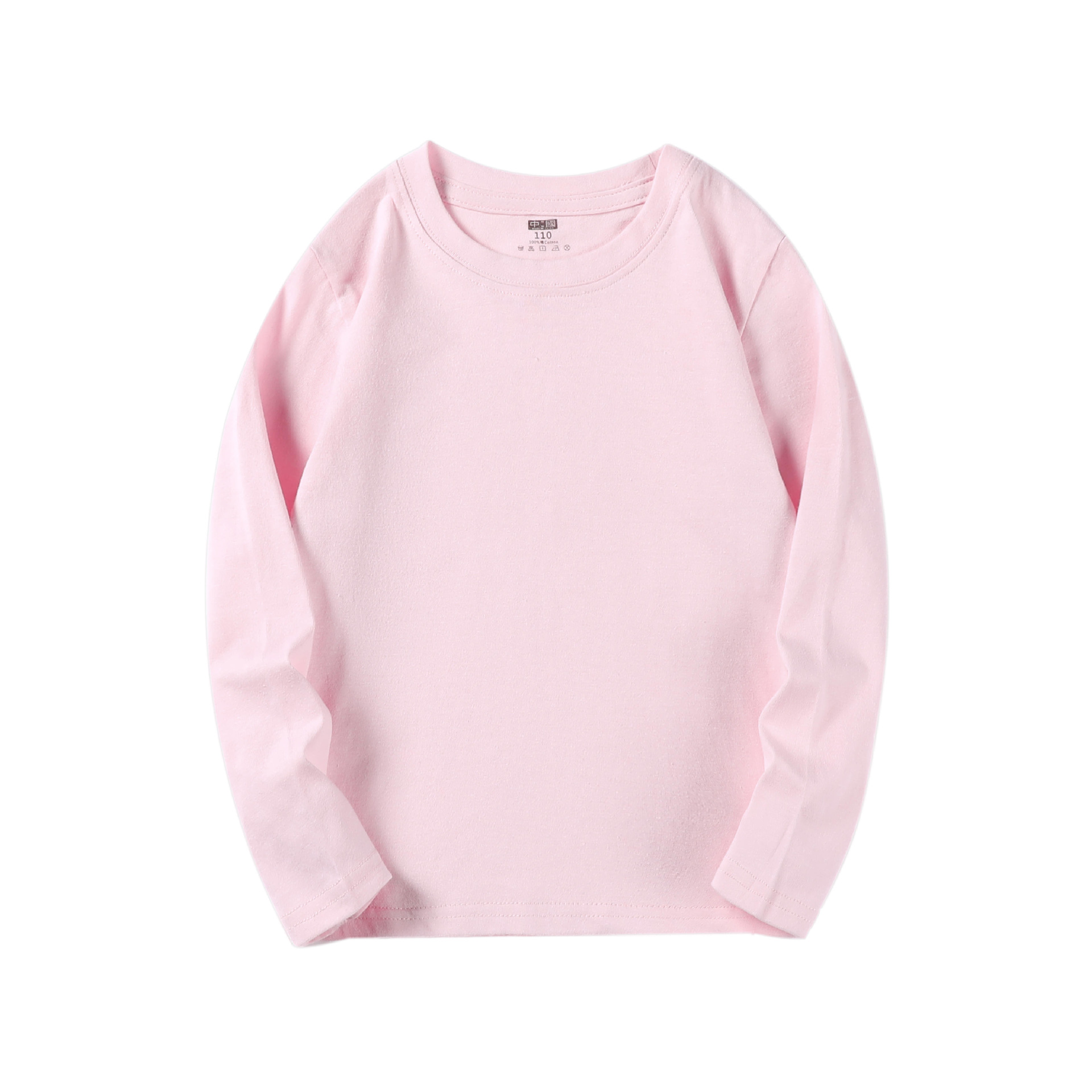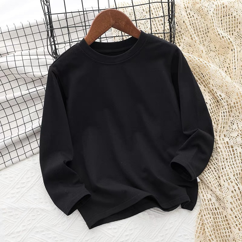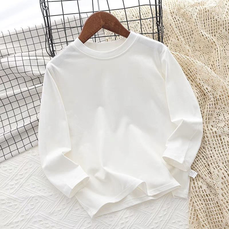 200g 100% 면 백 칼라 아동용 라운드 넥 긴팔 티셔츠 솔리드 컬러 중대형 아동용 라이트 버전 빈 버전 탑 d스토어 가기