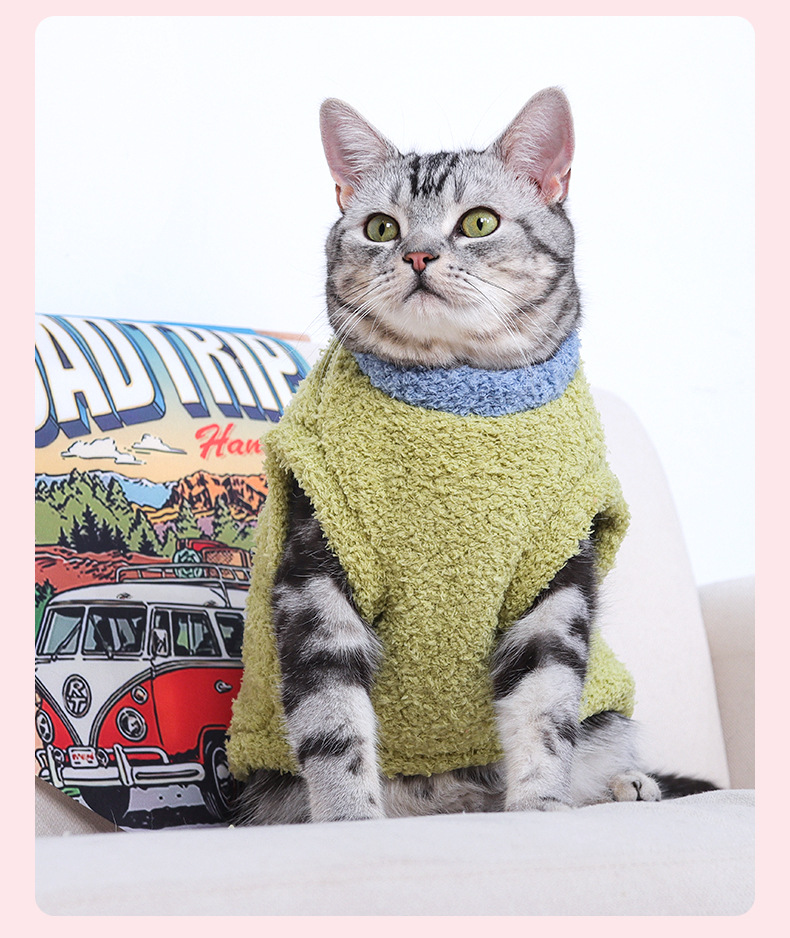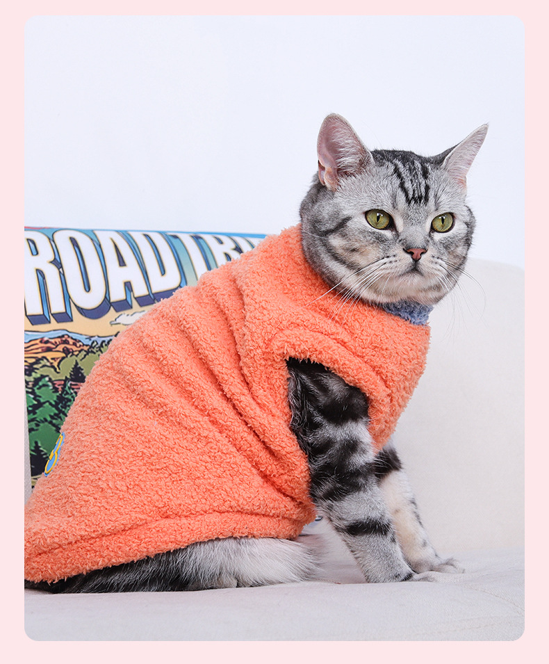국경을 넘는 신상품 폴라 플리스 애완동물 옷, 고양이 가을 겨울용 플리스 안감 조끼 스타일 애완견 면옷, 따뜻한 고양이 옷스토어 가기