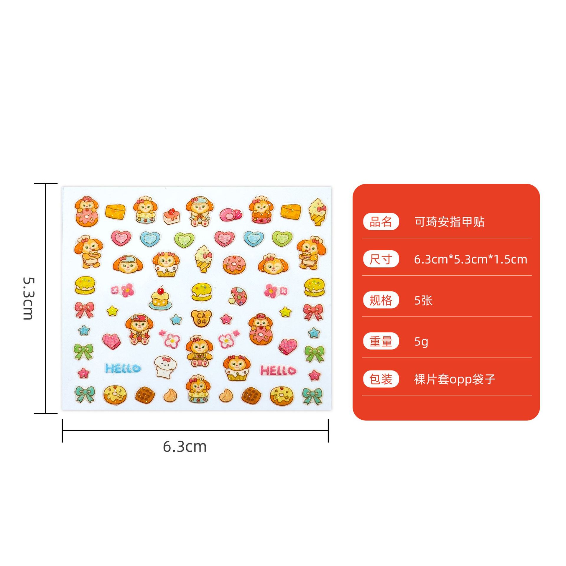 • 제이드 시나몬 강아지 네일 스티커 (OPP 가방에 포함된 반복되지 않는 베어 칩 5개)