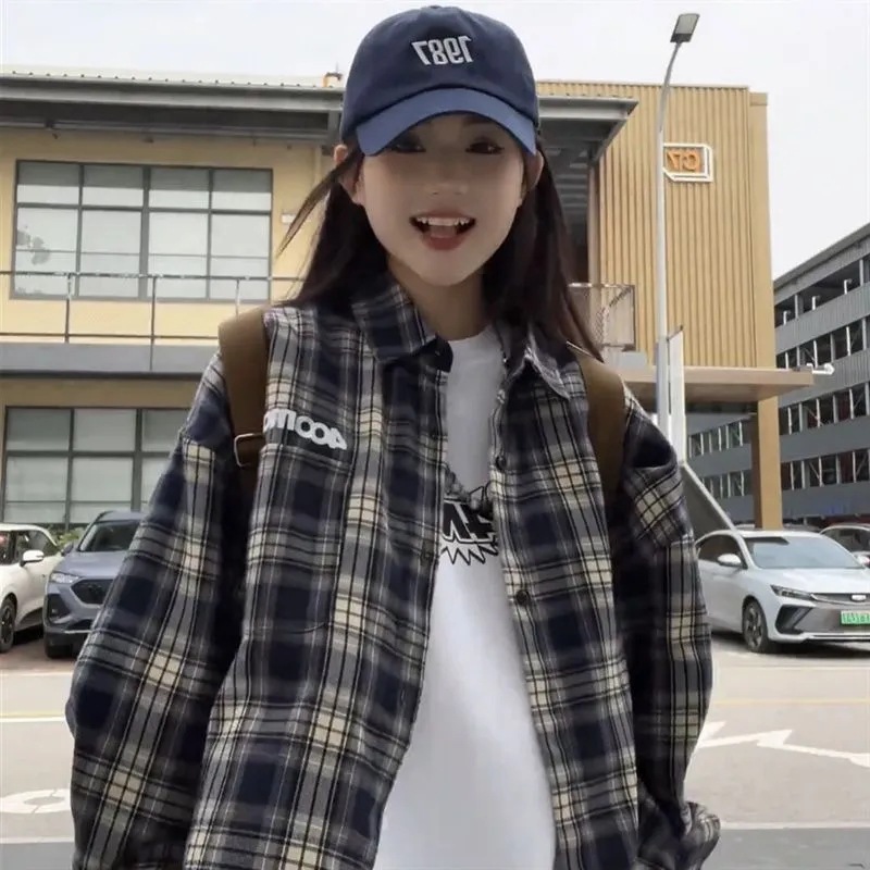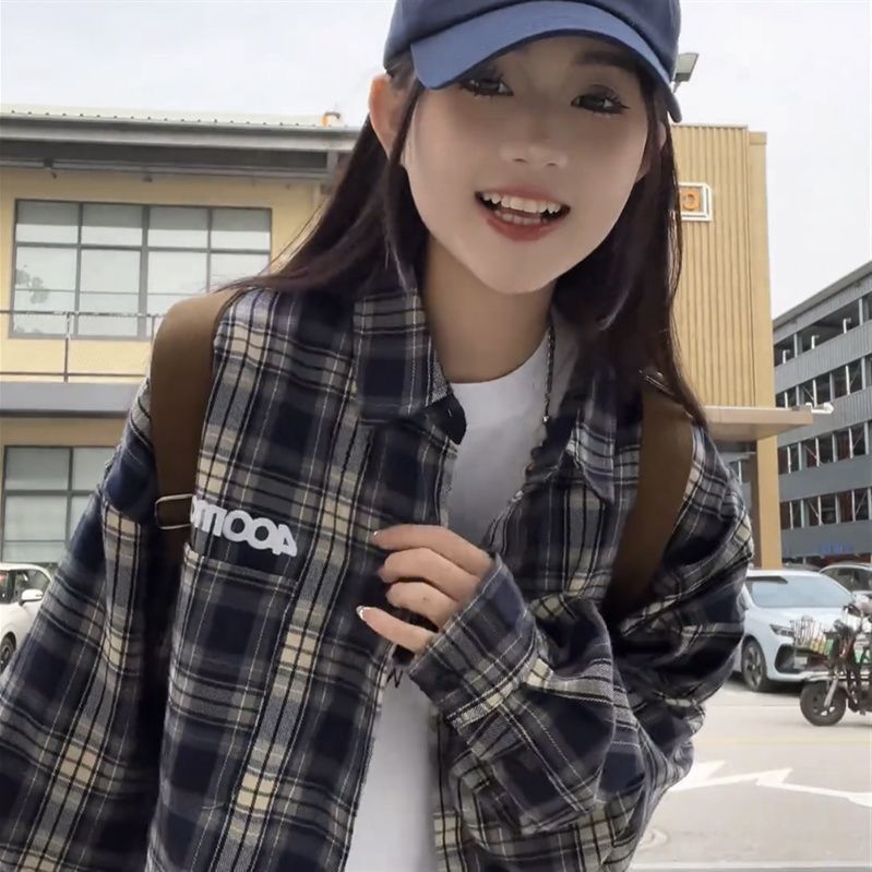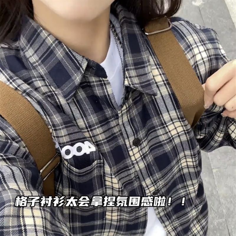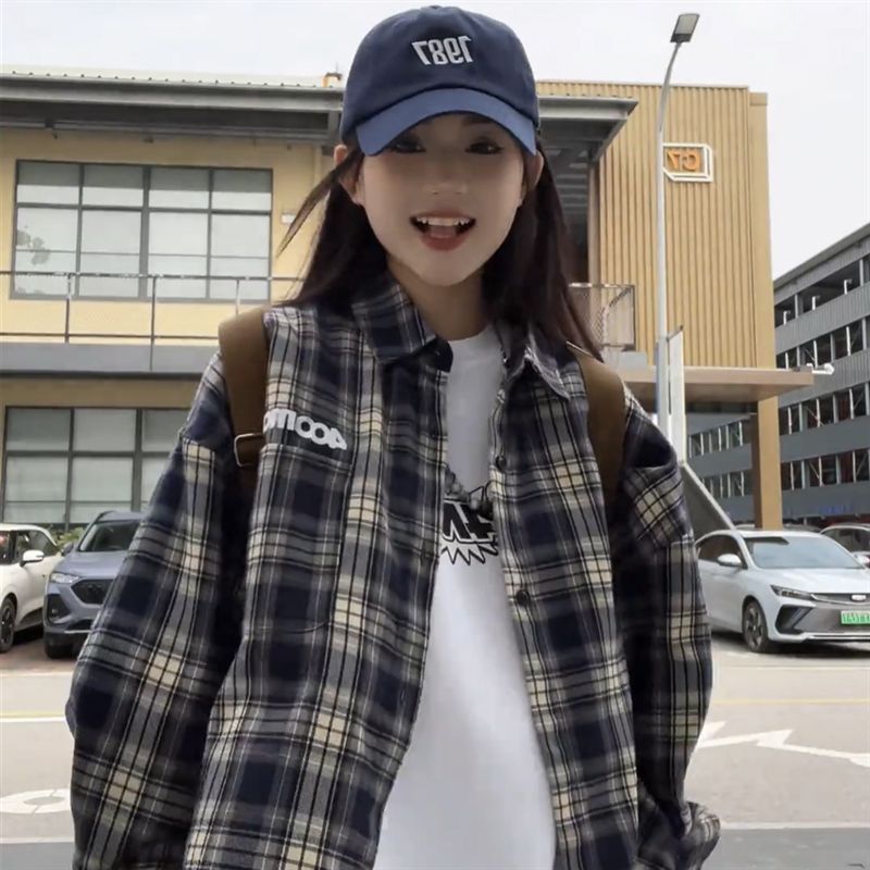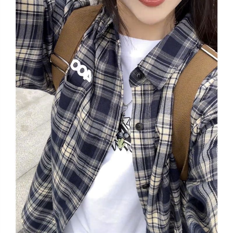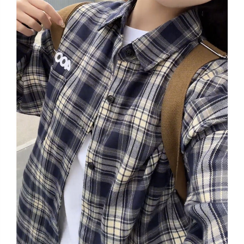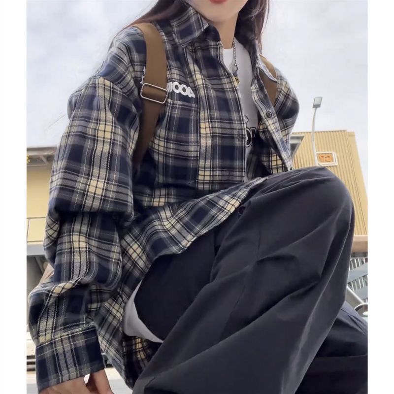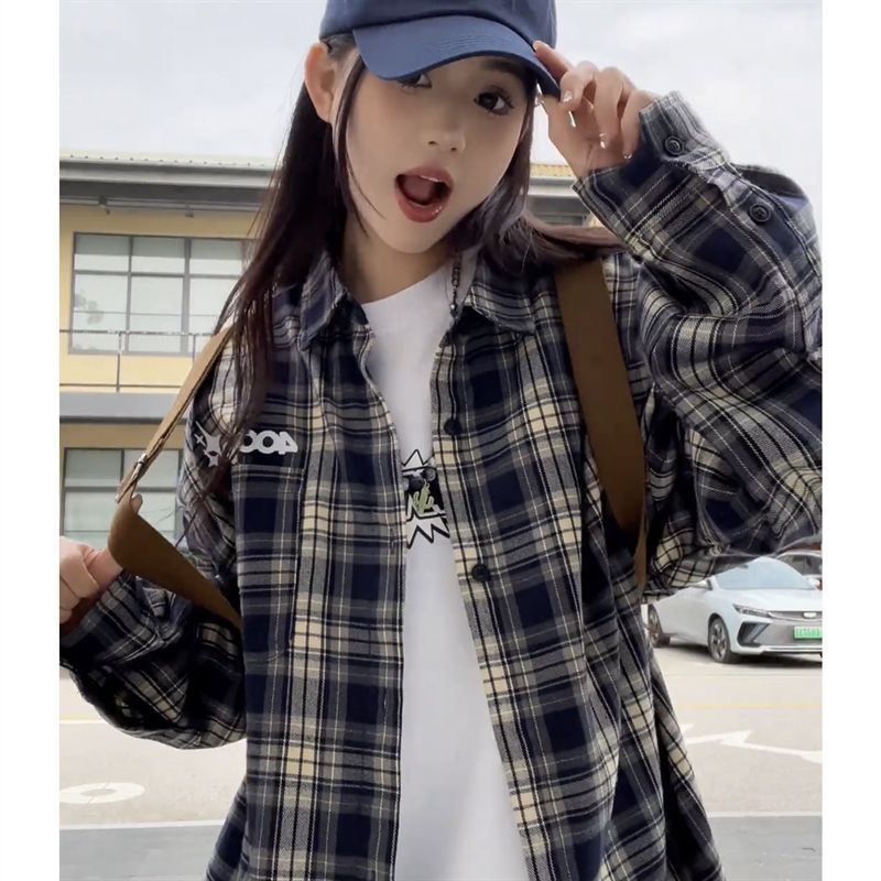 미국 스타일의 격자 무늬 긴팔 셔츠 여성의 봄과 가을 2024 새로운 디자인 감각 감각 느슨한 올매치 얇은 코트스토어 가기