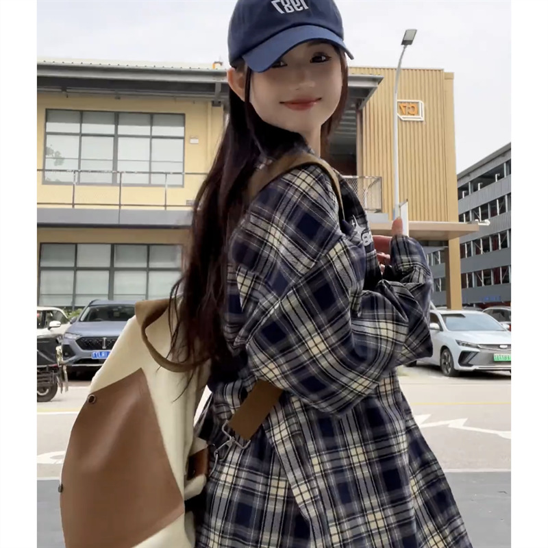 미국 스타일의 격자 무늬 긴팔 셔츠 여성의 봄과 가을 2024 새로운 디자인 감각 감각 느슨한 올매치 얇은 코트