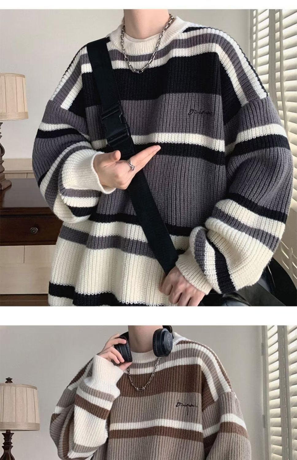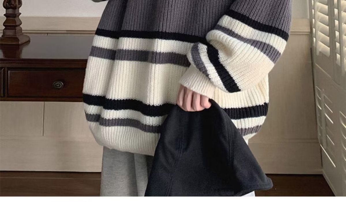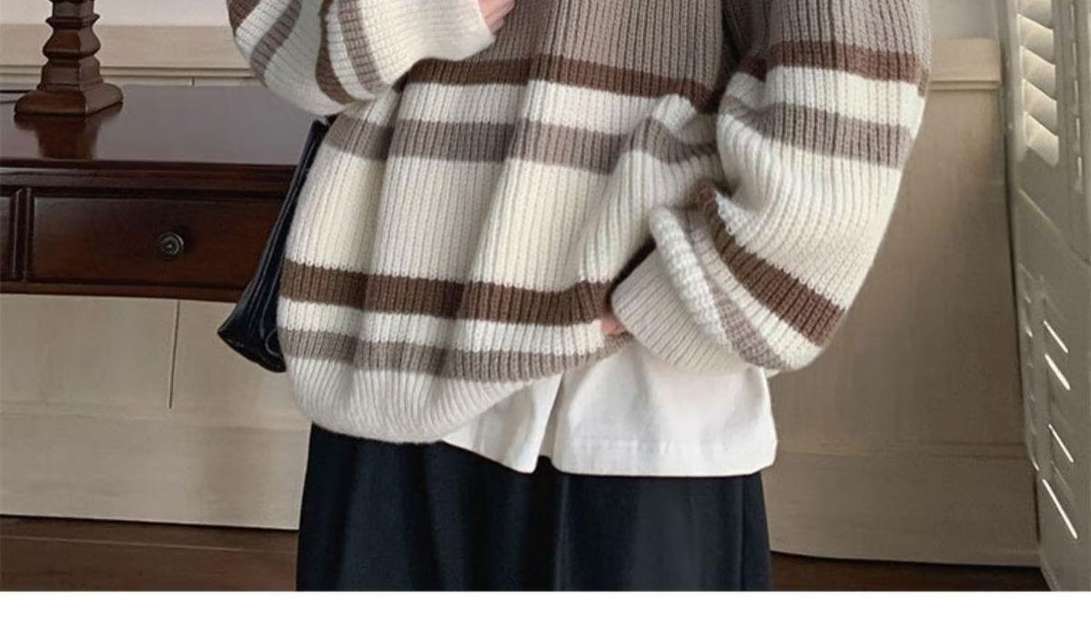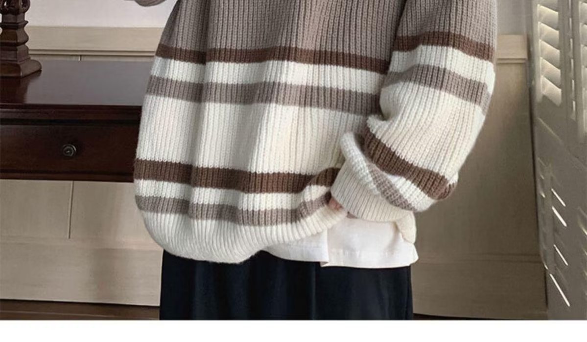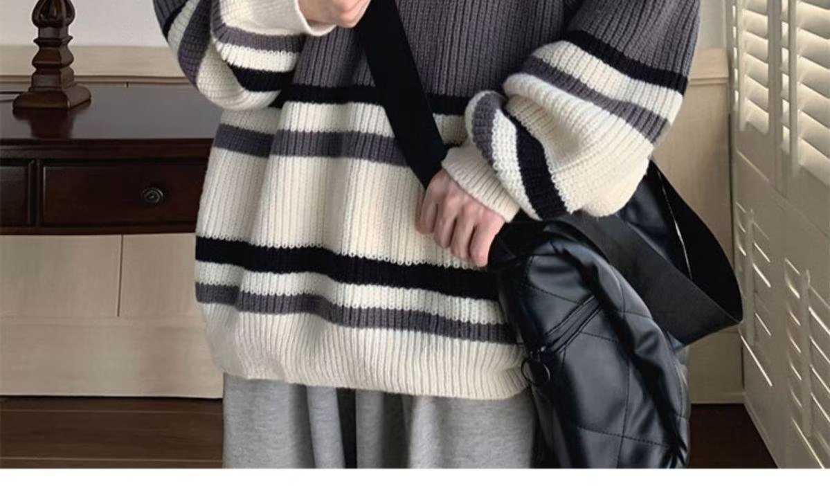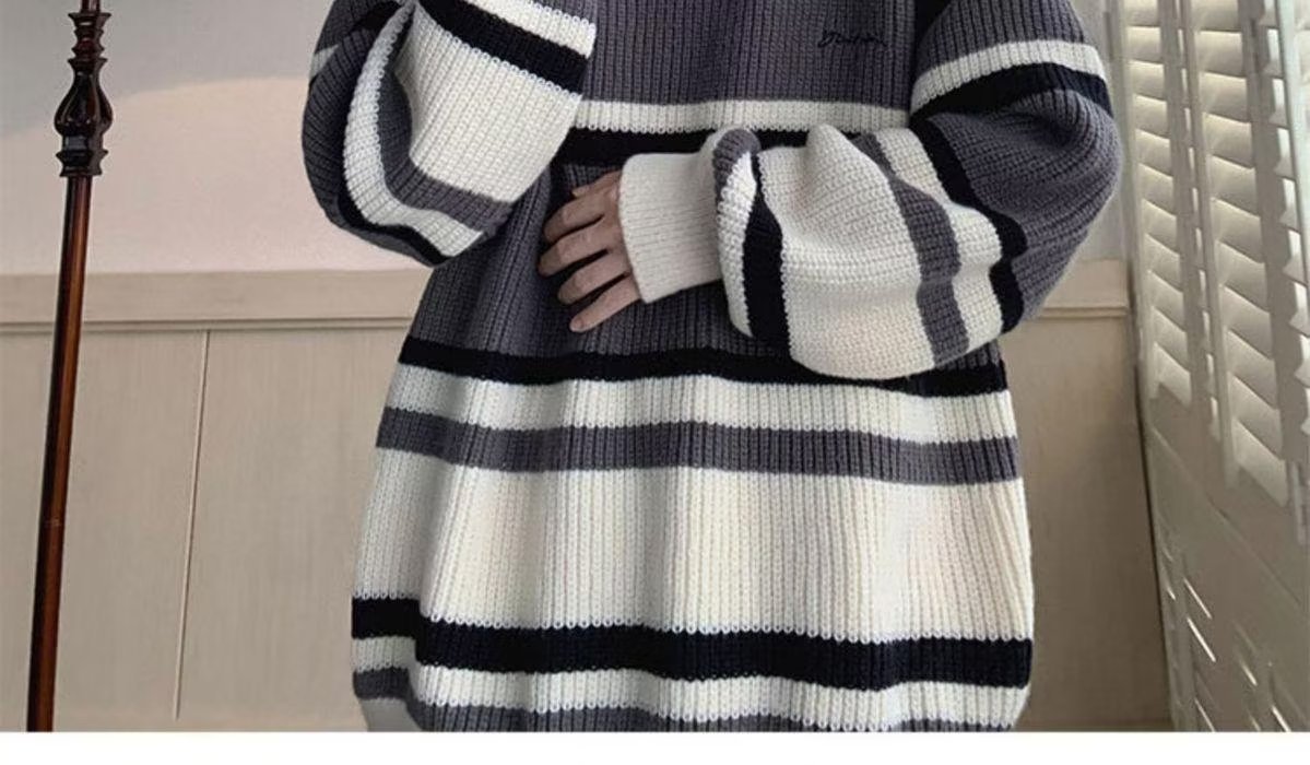 스웨터 남자 일본 스타일 레트로 스트라이프 콘트라스트베이스 셔츠 스웨터 가을과 겨울 새로운 유행 브랜드 루즈 스웨터 재킷스토어 가기
