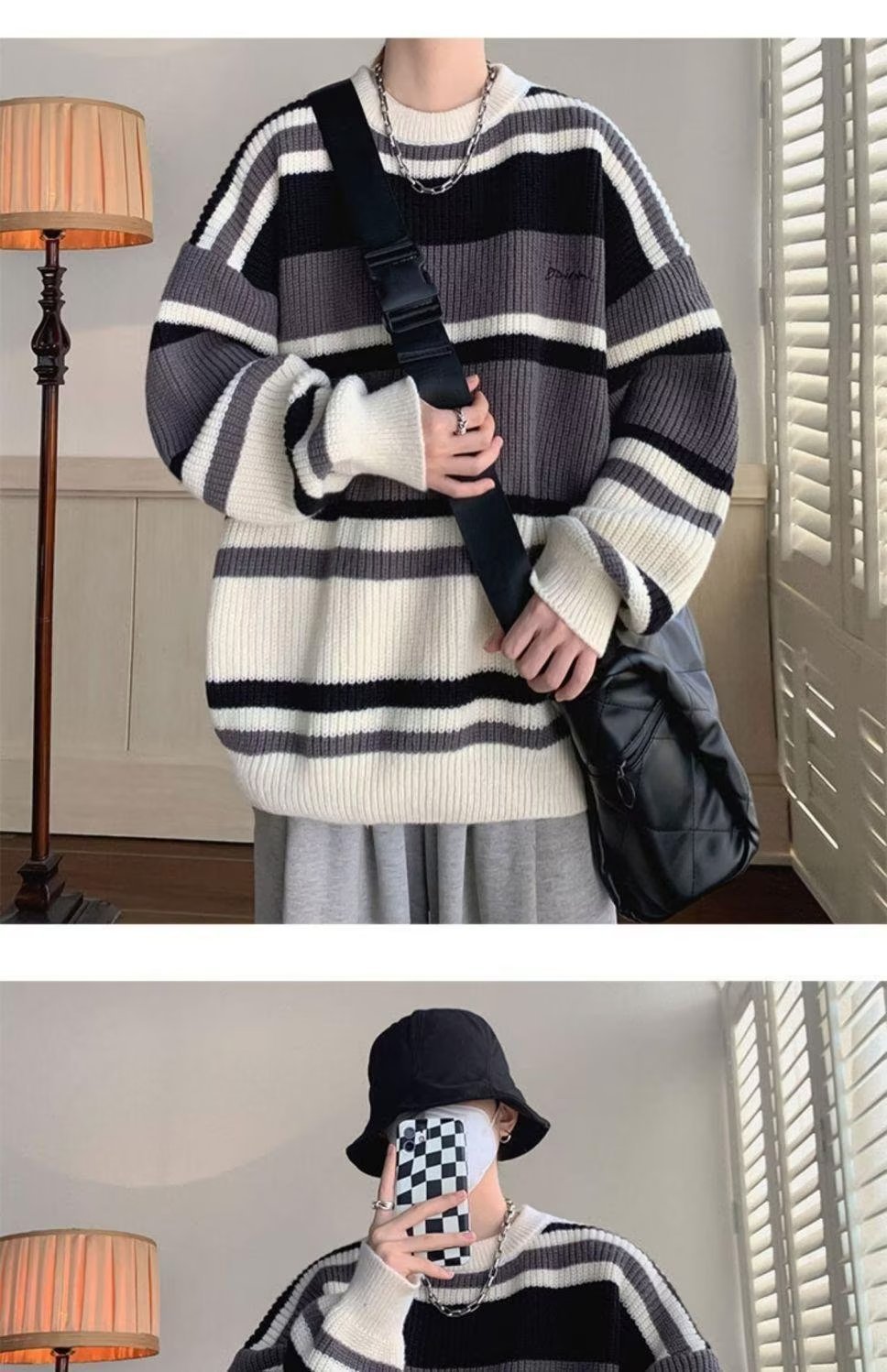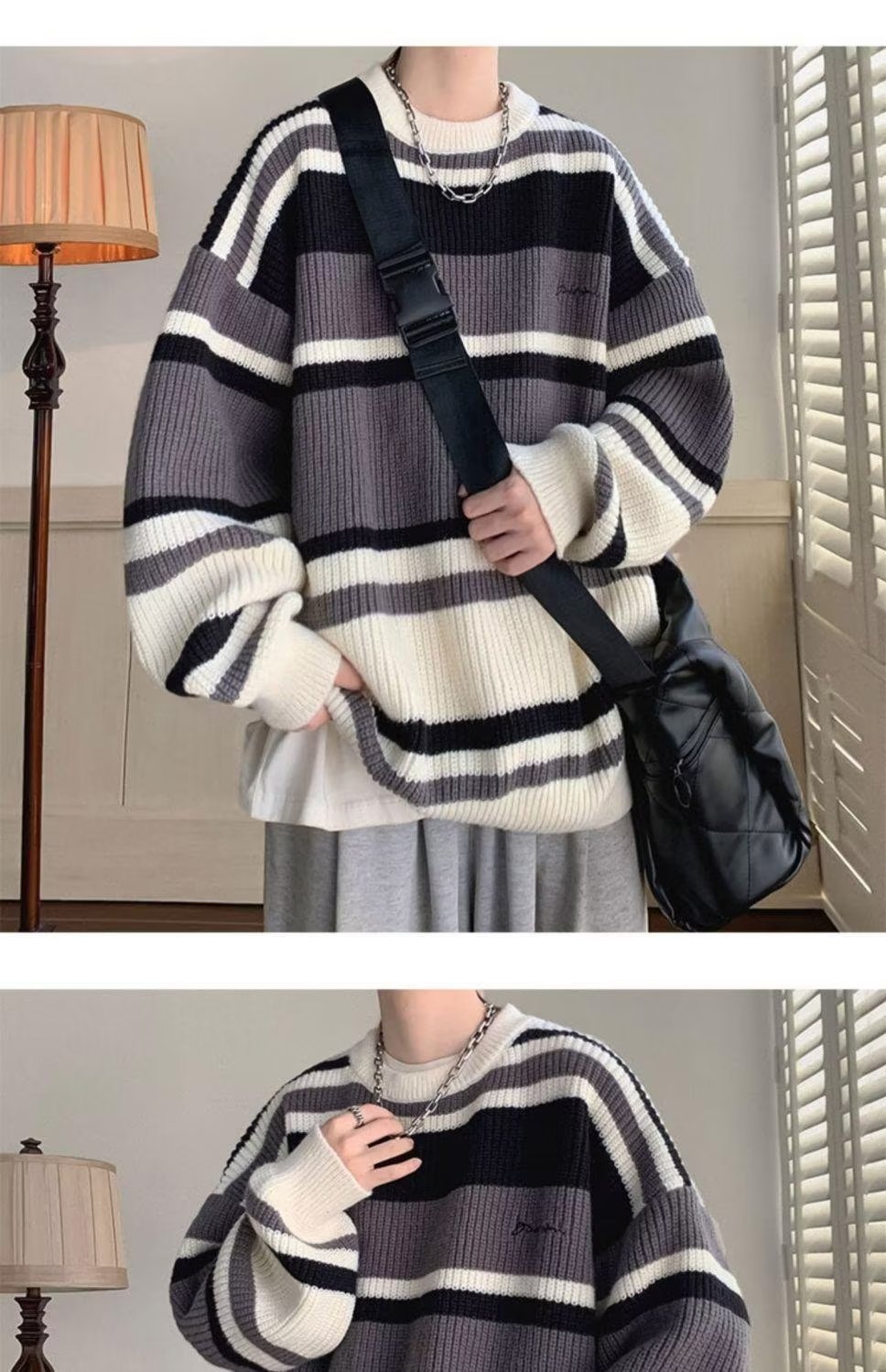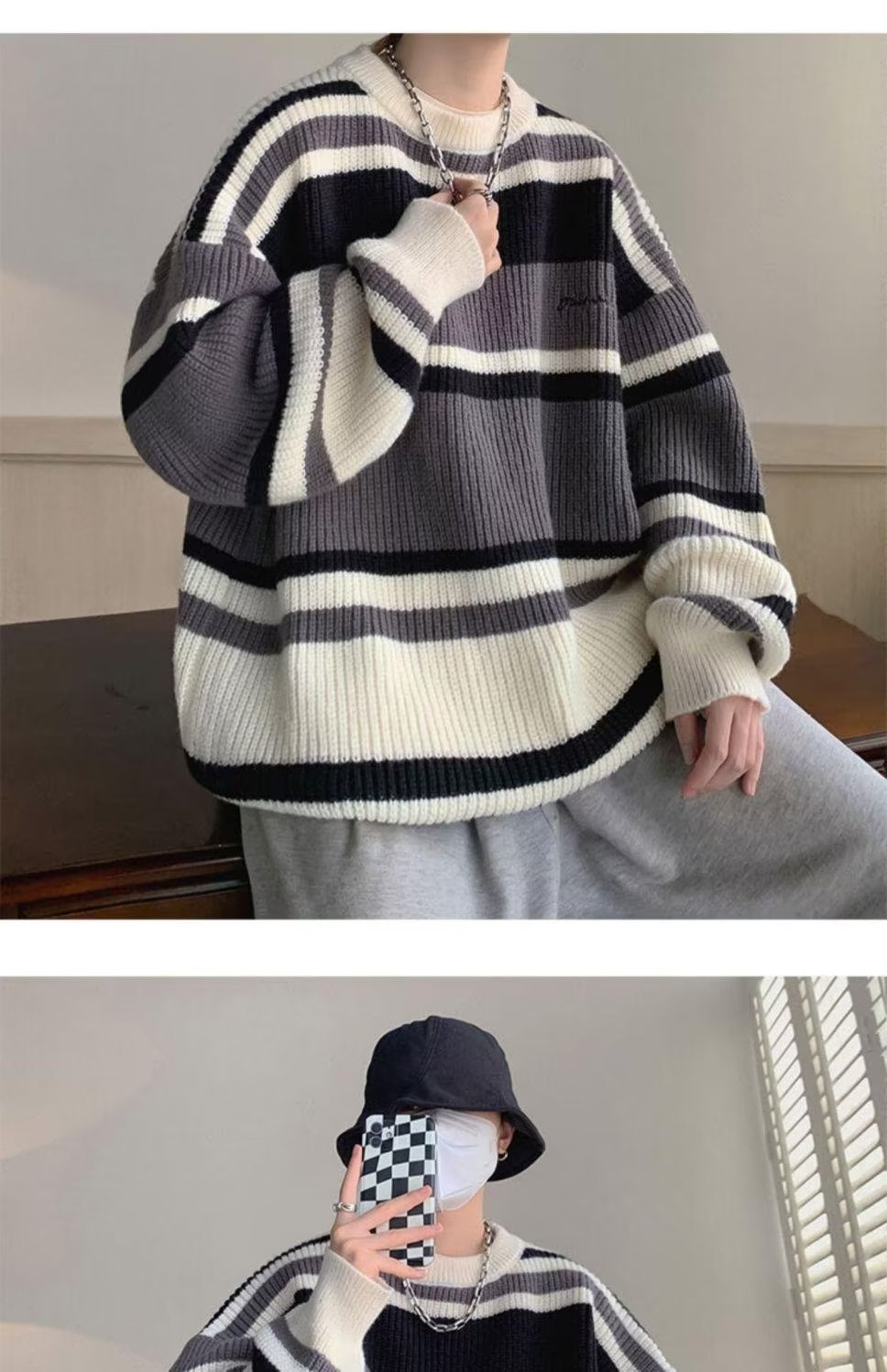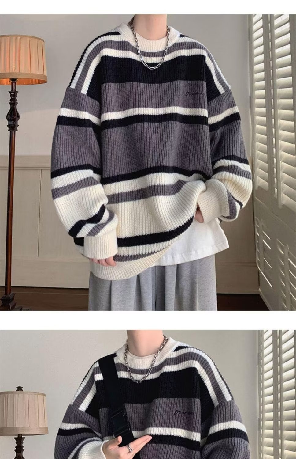 스웨터 남자 일본 스타일 레트로 스트라이프 콘트라스트베이스 셔츠 스웨터 가을과 겨울 새로운 유행 브랜드 루즈 스웨터 재킷스토어 가기