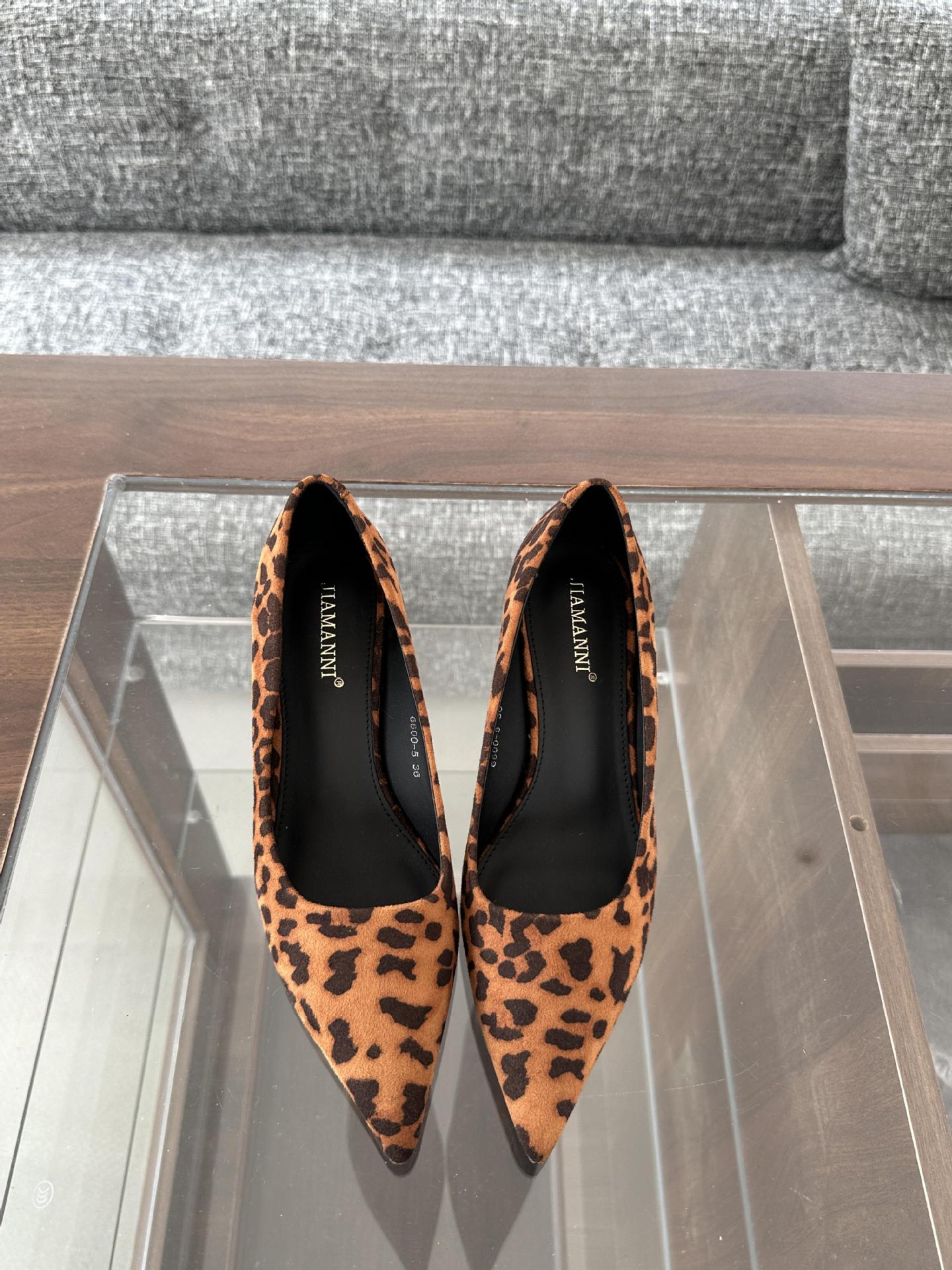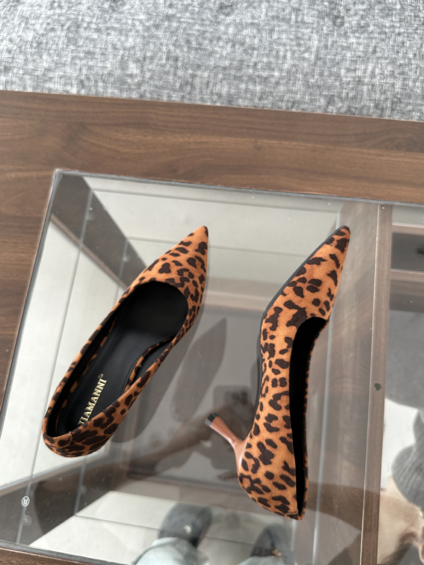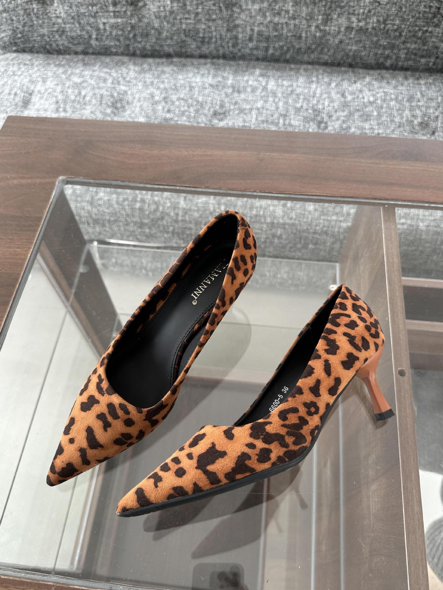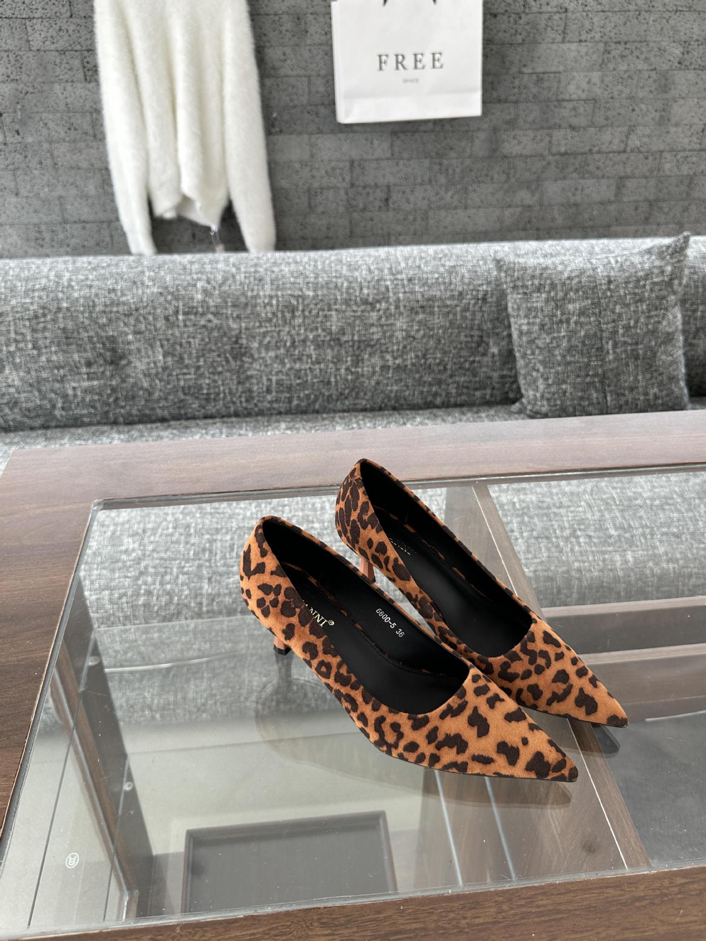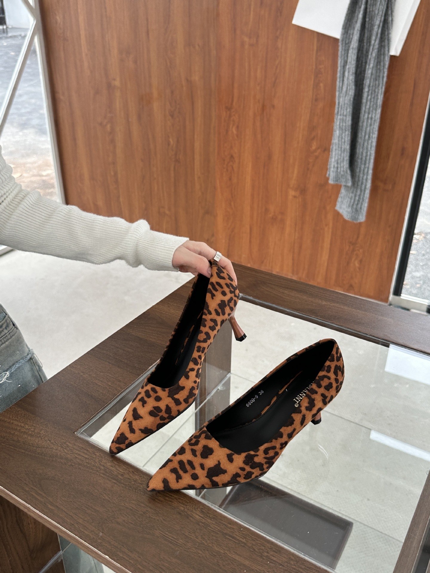 2024 새로운 패션 레오파드 하이힐 디자인 틈새 우아한 여성의 얇은 발 뒤꿈치 5cm 전문 여성 신발스토어 가기