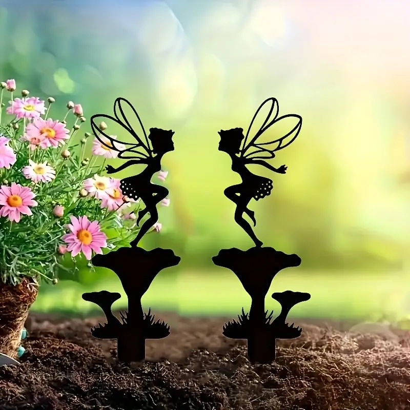 아트 데코 요정 버섯 정원 더미, 금속 공예 버섯 요정 동상 잔디 장식