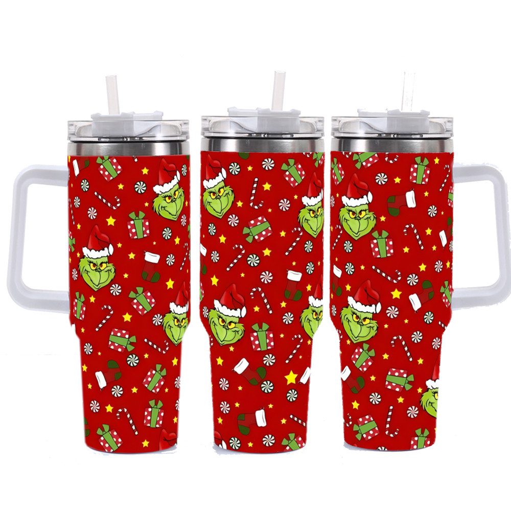 국경 간 스테인레스 스틸 자동차 컵 아이스 깡패 새로운 크리스마스 그린 치 40oz 커피 여행 콜드 핸들 보온병 컵스토어 가기