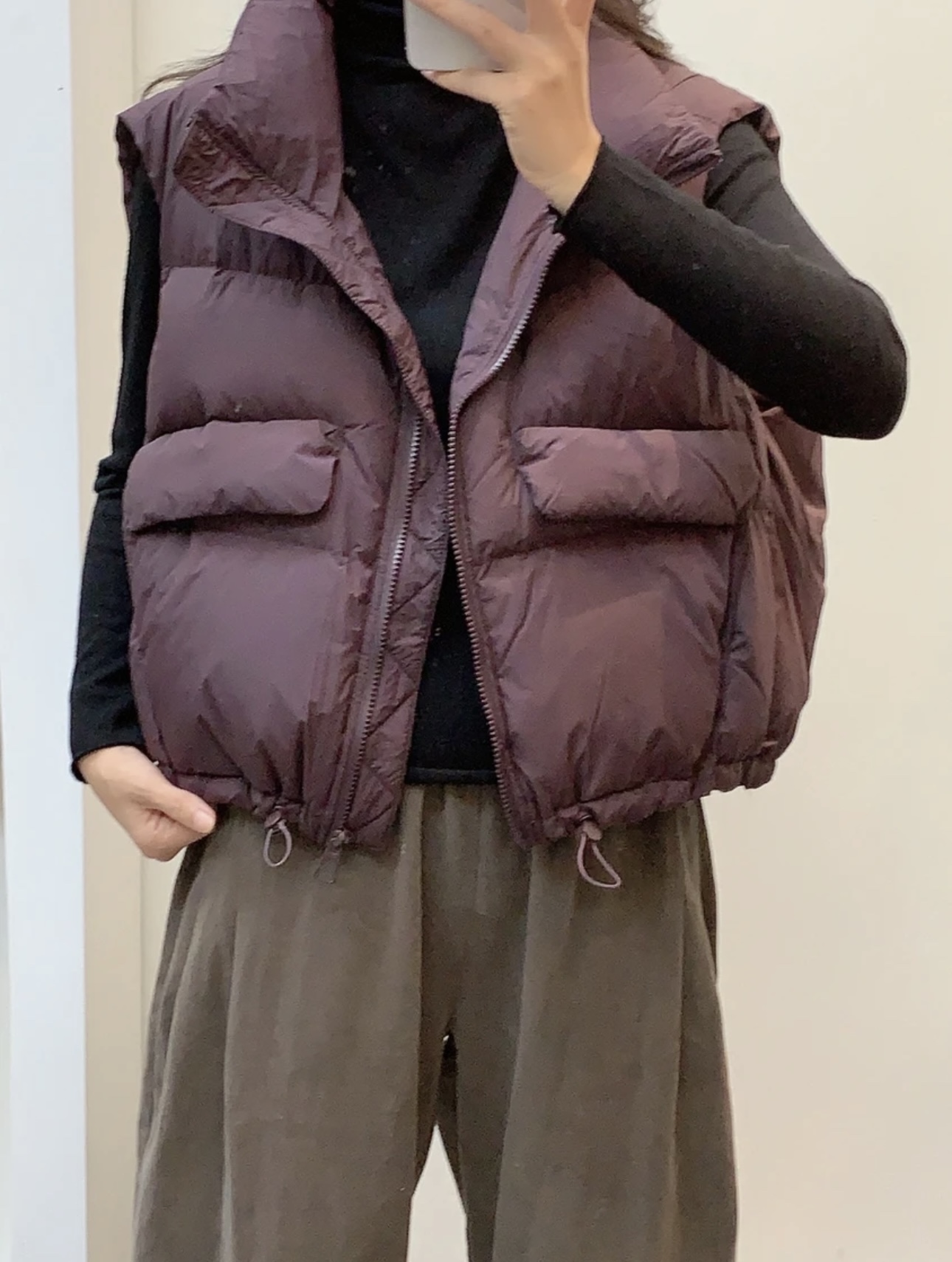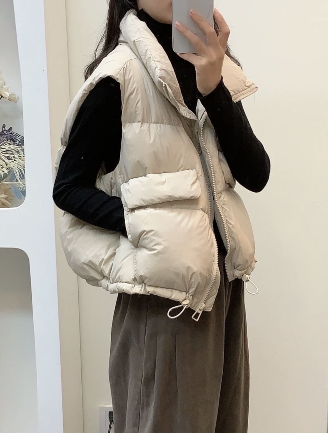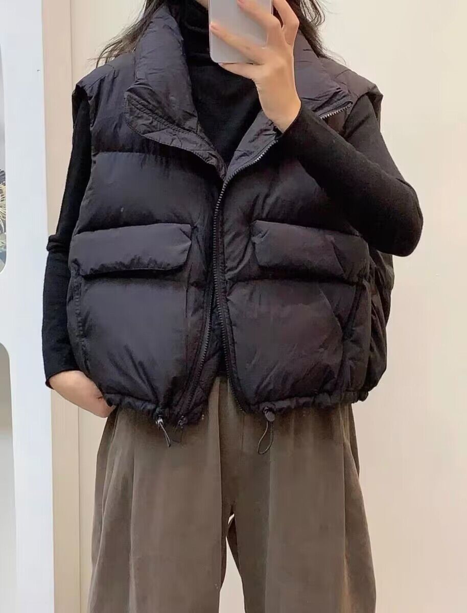 다운 조끼 2024 새로운 유럽 여성 겨울 스탠드 칼라 느슨한 짧은 따뜻한 조끼