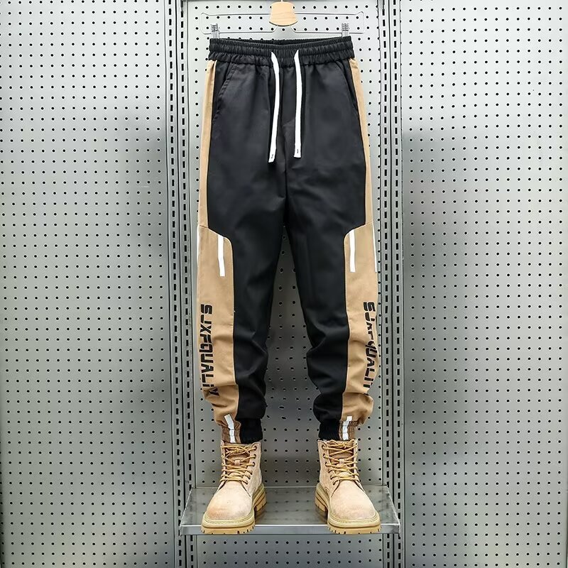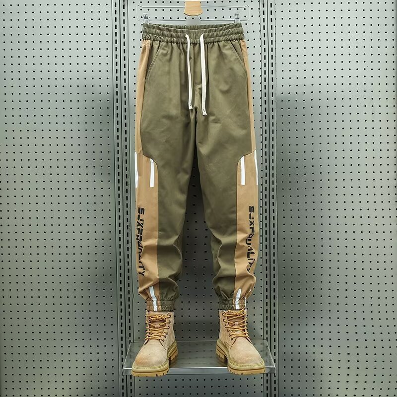 아메리칸 스타일 트렌디 브랜드 봄과 가을 새로운 도착 툴링 바지 남자 캐주얼 스트라이프 컬러 매칭 플러스 사이즈 듀플렉스 핸섬 할란 스포츠 바지