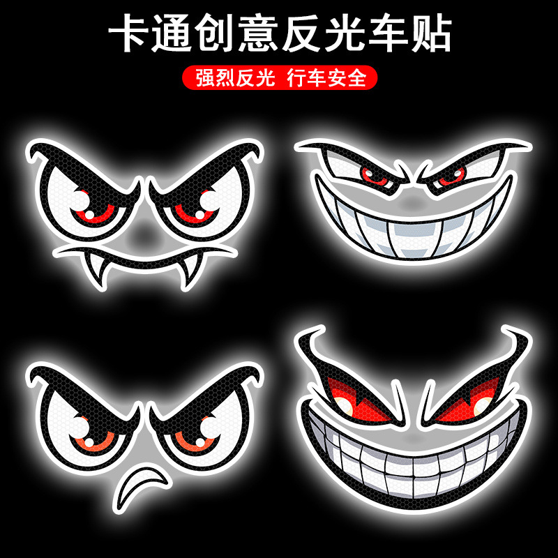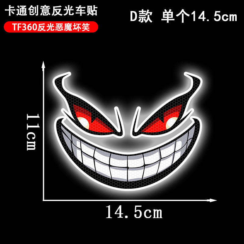 국경 반사 자동차 스티커 악마 웃는 눈 스티커 할로윈 만화 오토바이 스티커 방수 스티커스토어 가기