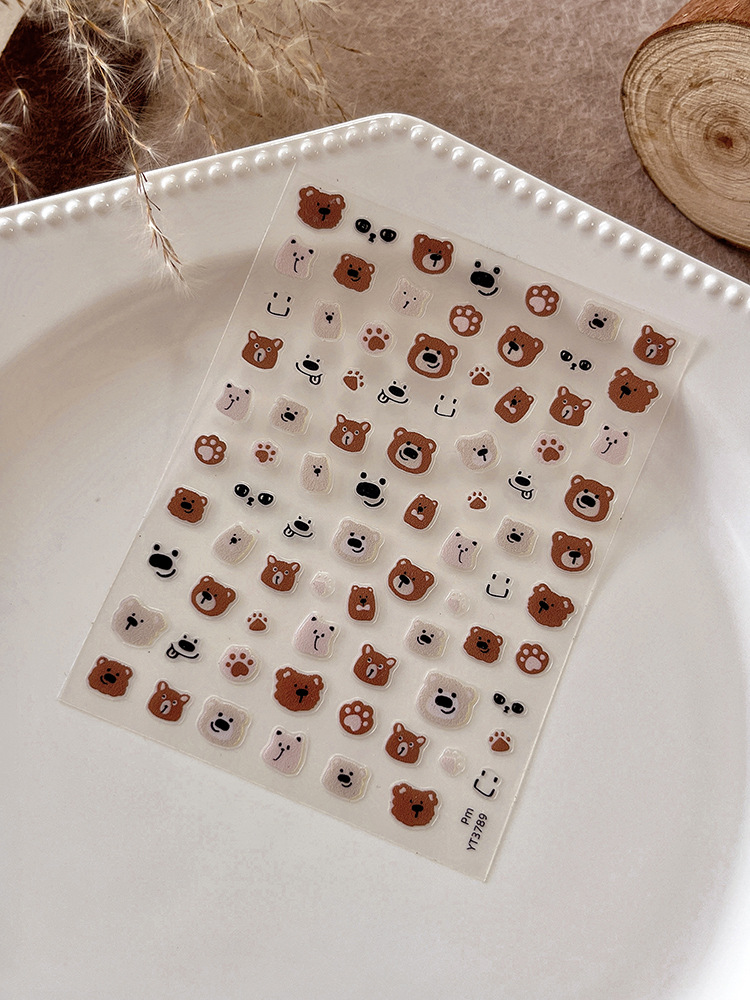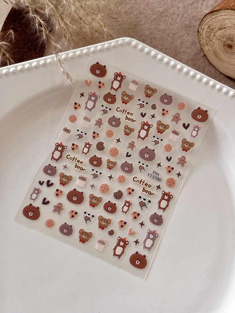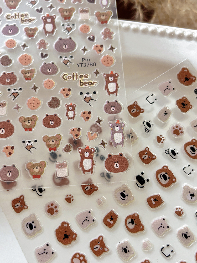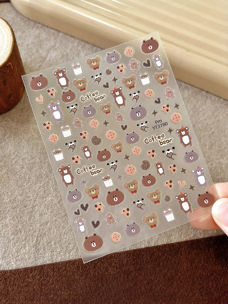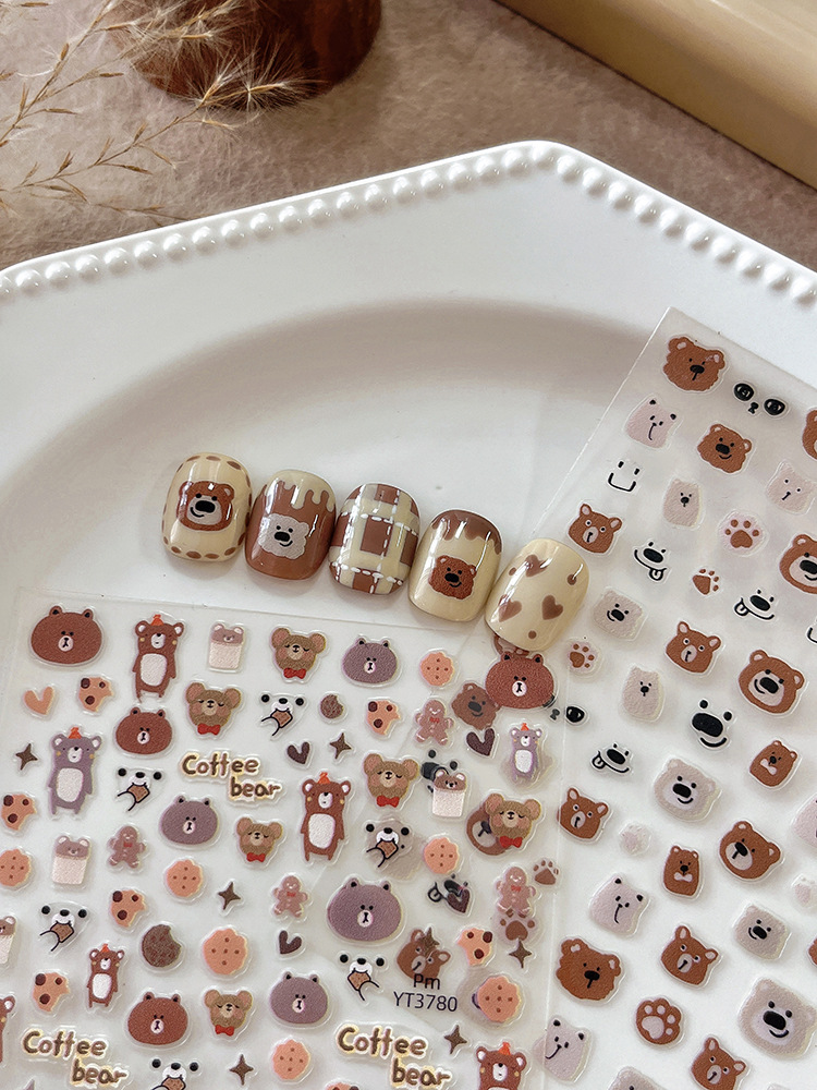 YITU 개미 그림 귀여운 만화 곰 네일 아트 스티커 평면 얇은 인대 접착 네일 장식 스티커 YT3780