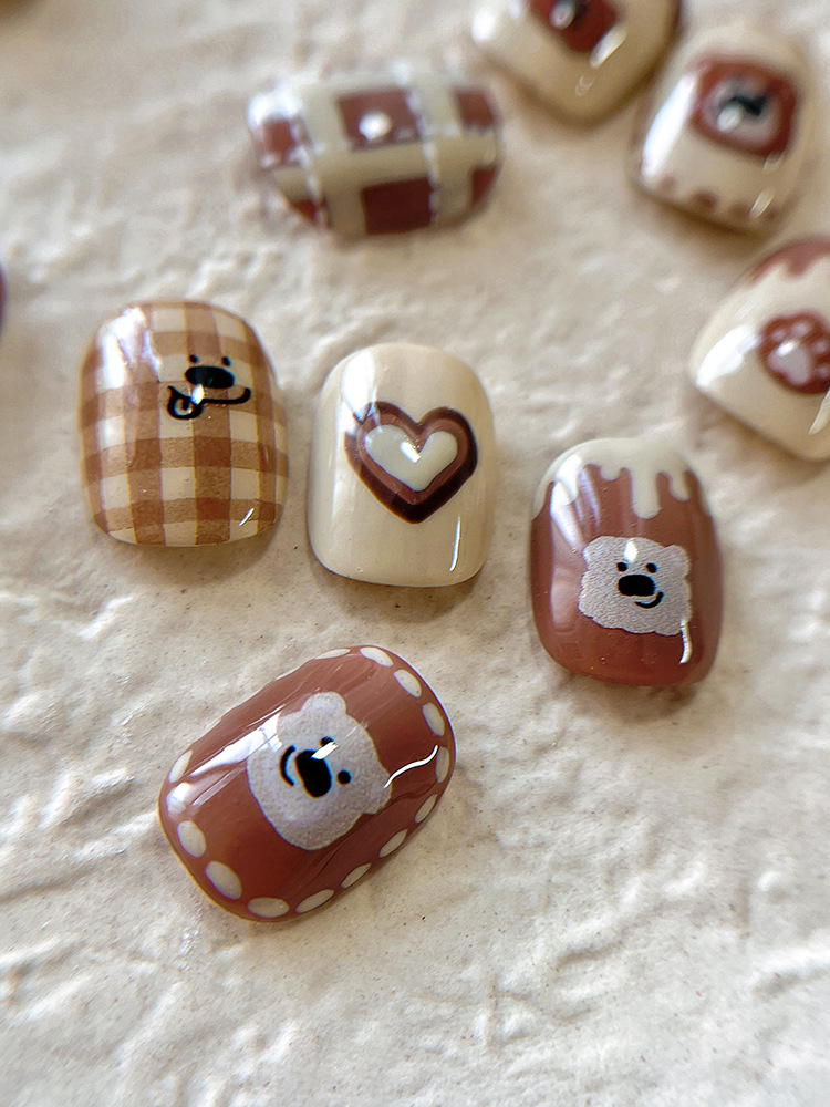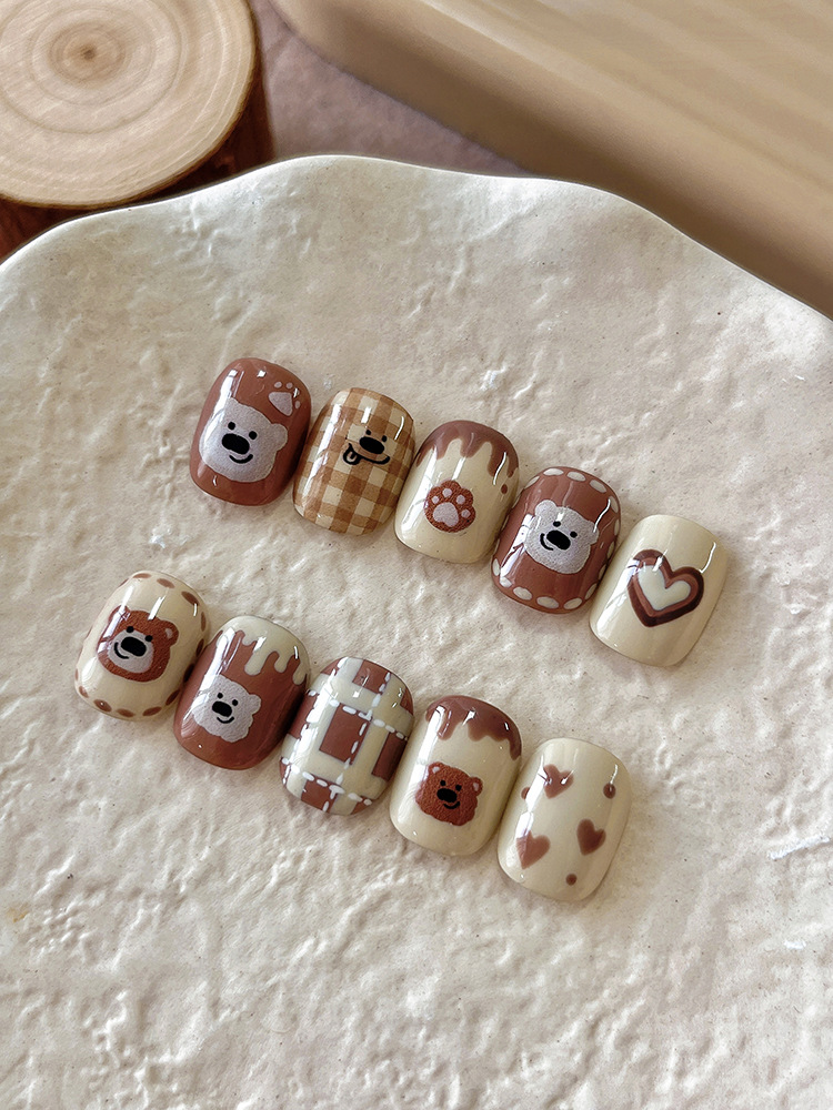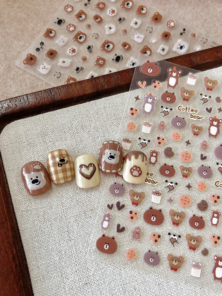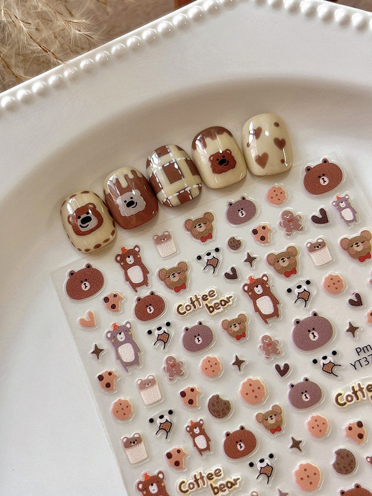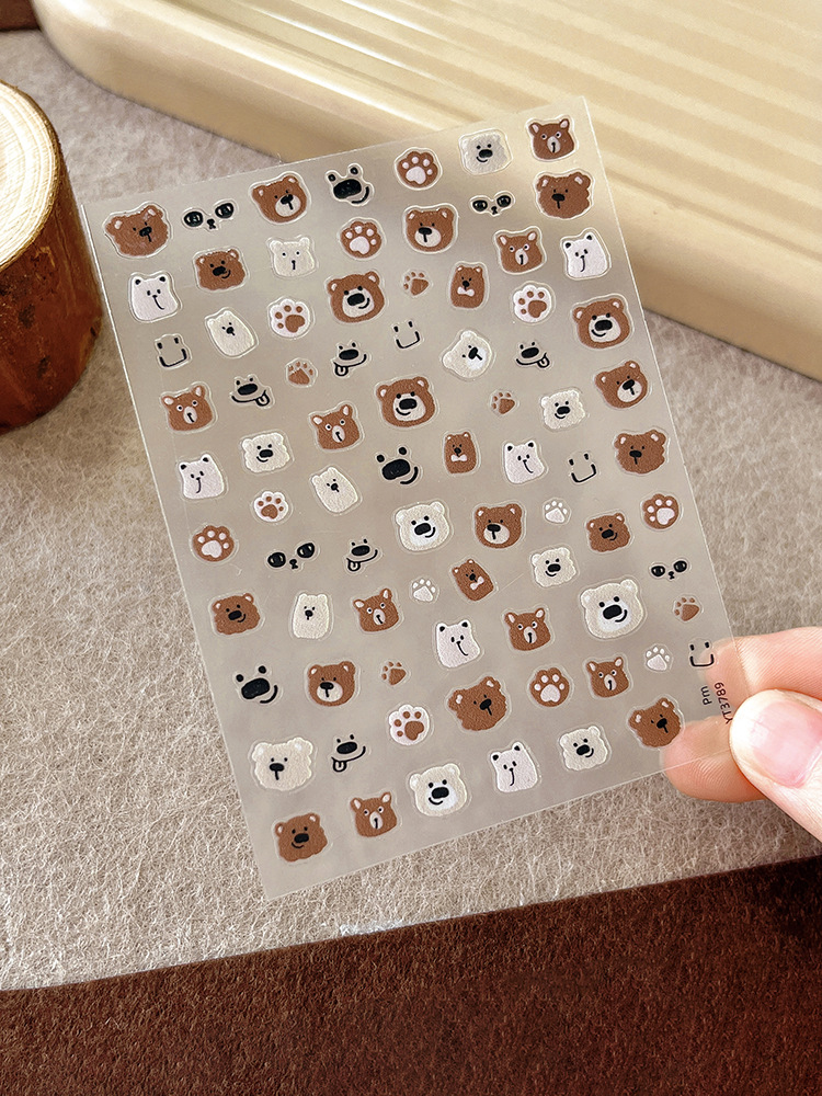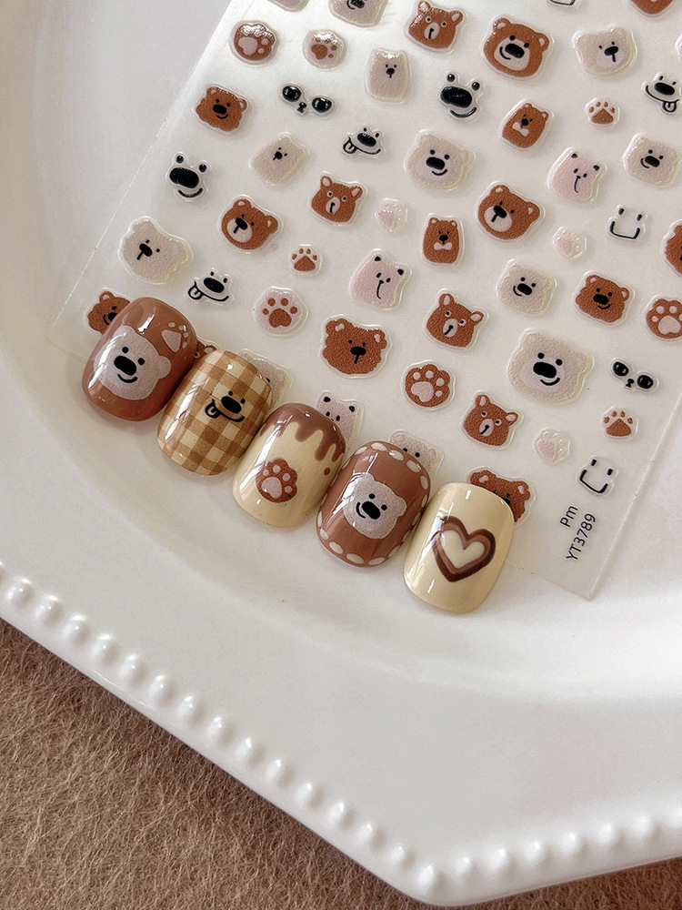YITU 개미 그림 귀여운 만화 곰 네일 아트 스티커 평면 얇은 인대 접착 네일 장식 스티커 YT3780