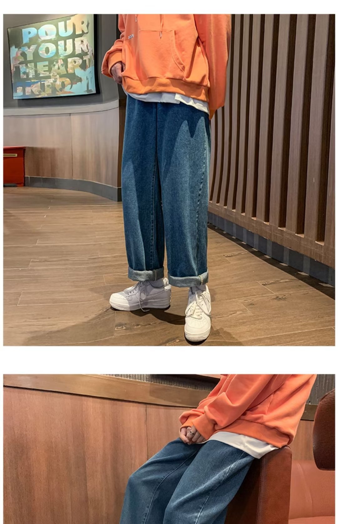 남성용 블랙 심플 청바지 새로운 가을 패션 브랜드 하이 스트리트 스트레이트 로우 와이드 레그 아메리칸 스타일 레트로 플러스 사이즈 바지스토어 가기