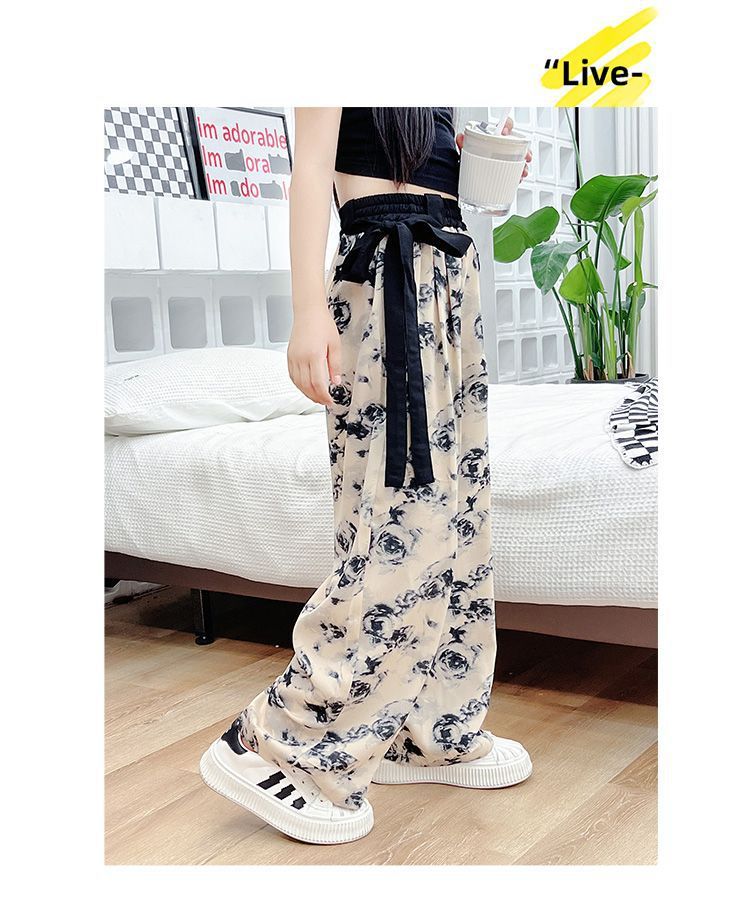 소녀 안티 모기 바지 여름 아이스 실크 잉크 페인팅 바지 새로운 서양식 소녀 여름 착용 얇은 국가 스타일 와이드 다리 바지