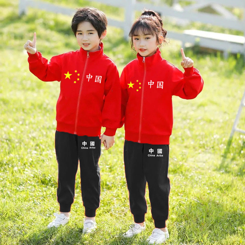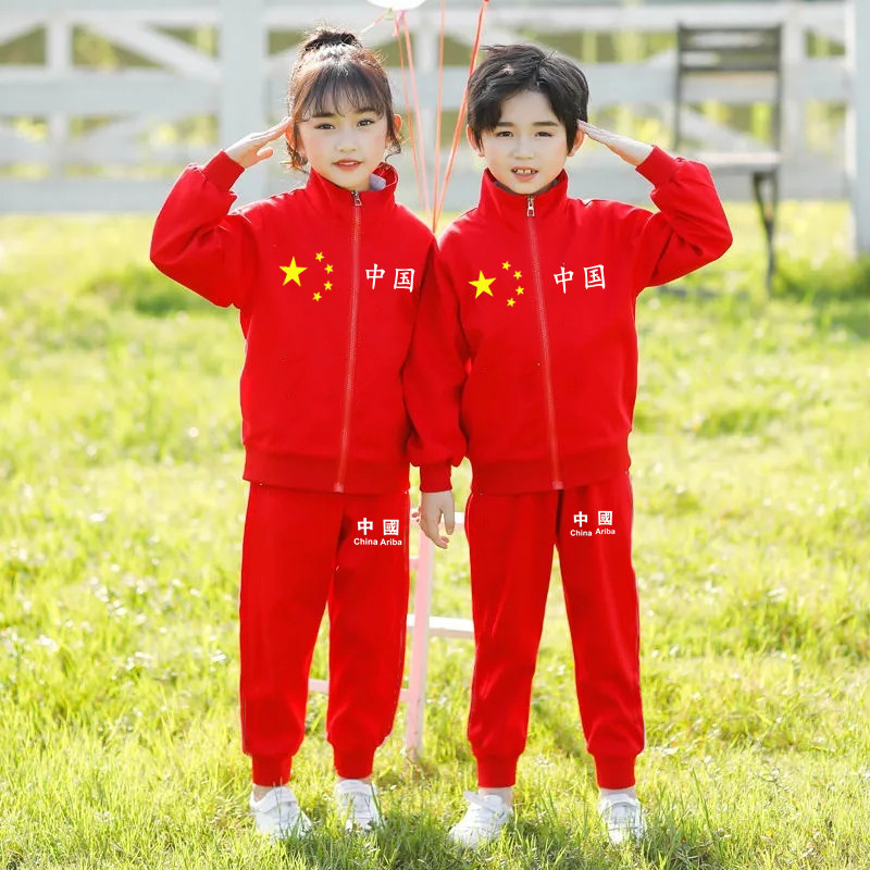 클래스 의류 초등학교 학생 학교 유니폼 봄과 가을 중국 스타일 빨간 어린이 운동복 세트 2 조각 유치원 정원 옷