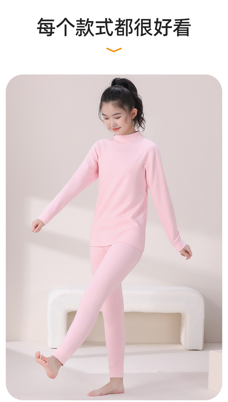 2024 새로운 중학교 고등학교 학생 속옷 세트 소녀의 가을 옷과 바지 여성용 대형 어린이 따뜻한 면화 스웨터