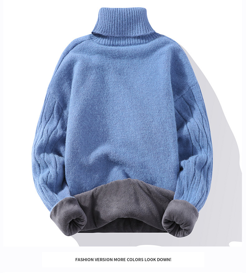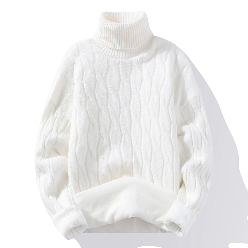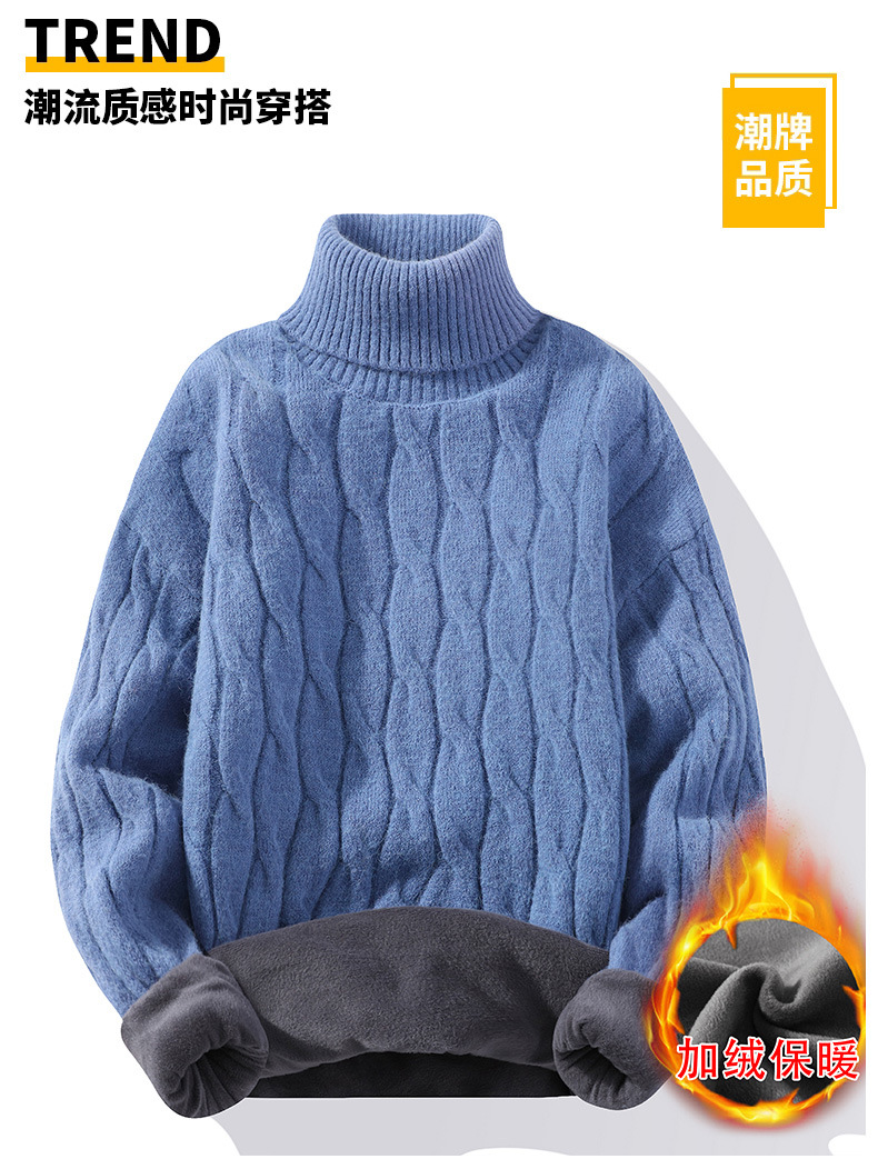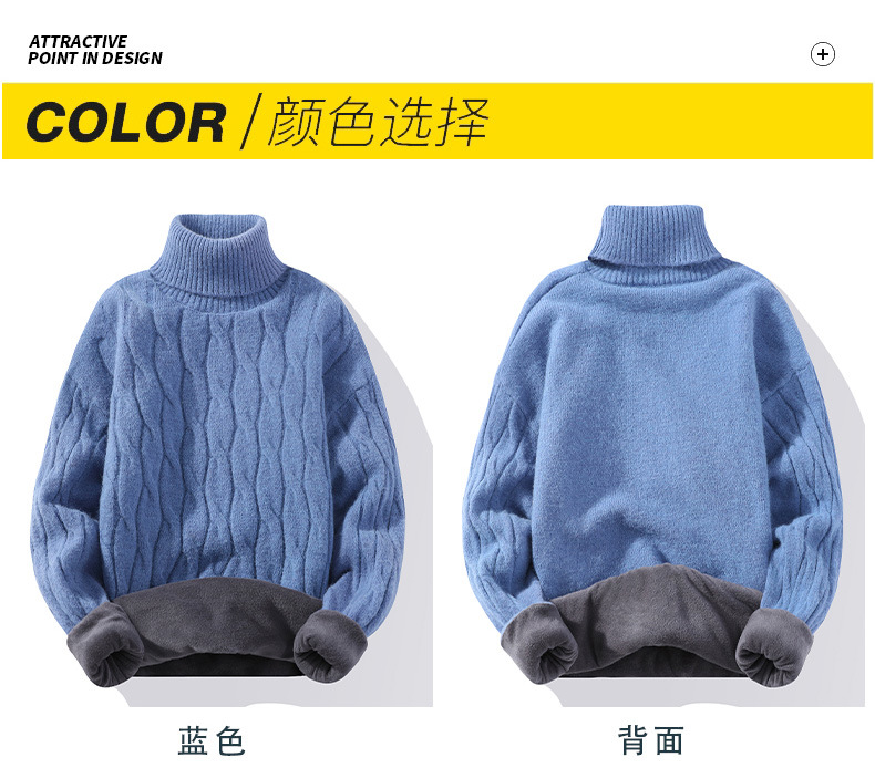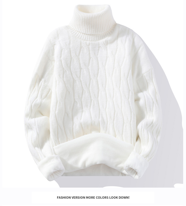 2024 가을/겨울 새 기모 두꺼운 학생 따뜻한 니트 백 셔츠 남자 높은 목 멀티 컬러 올 매치 스웨터