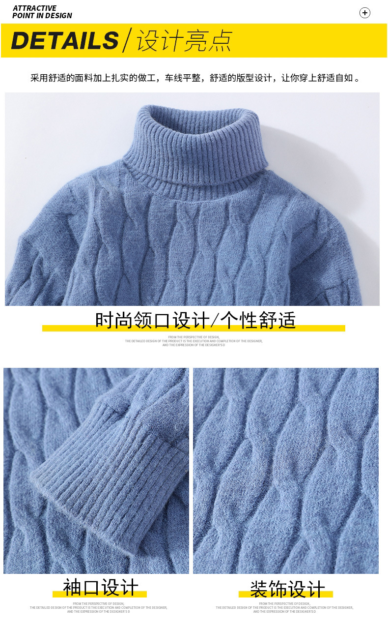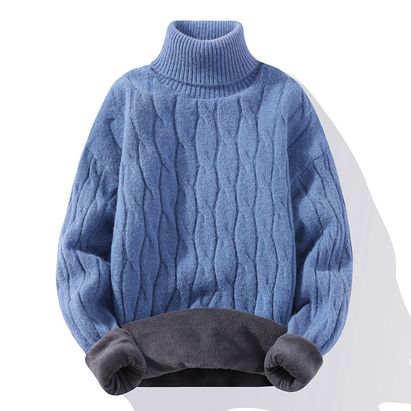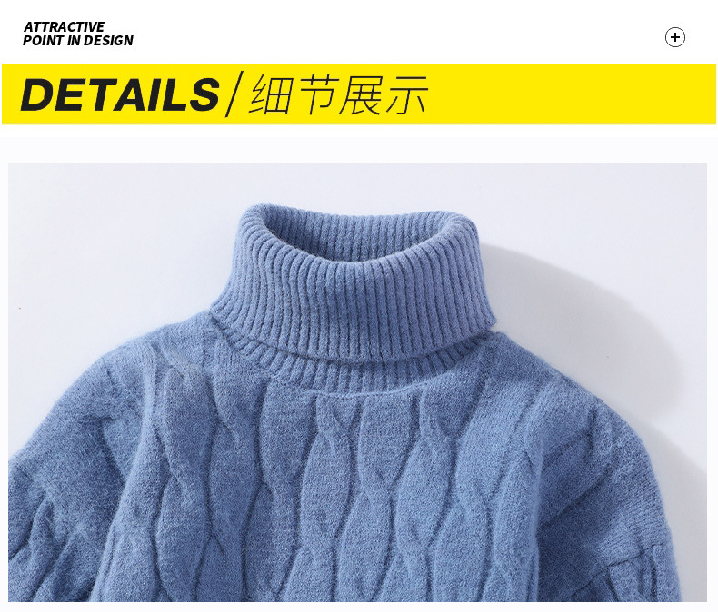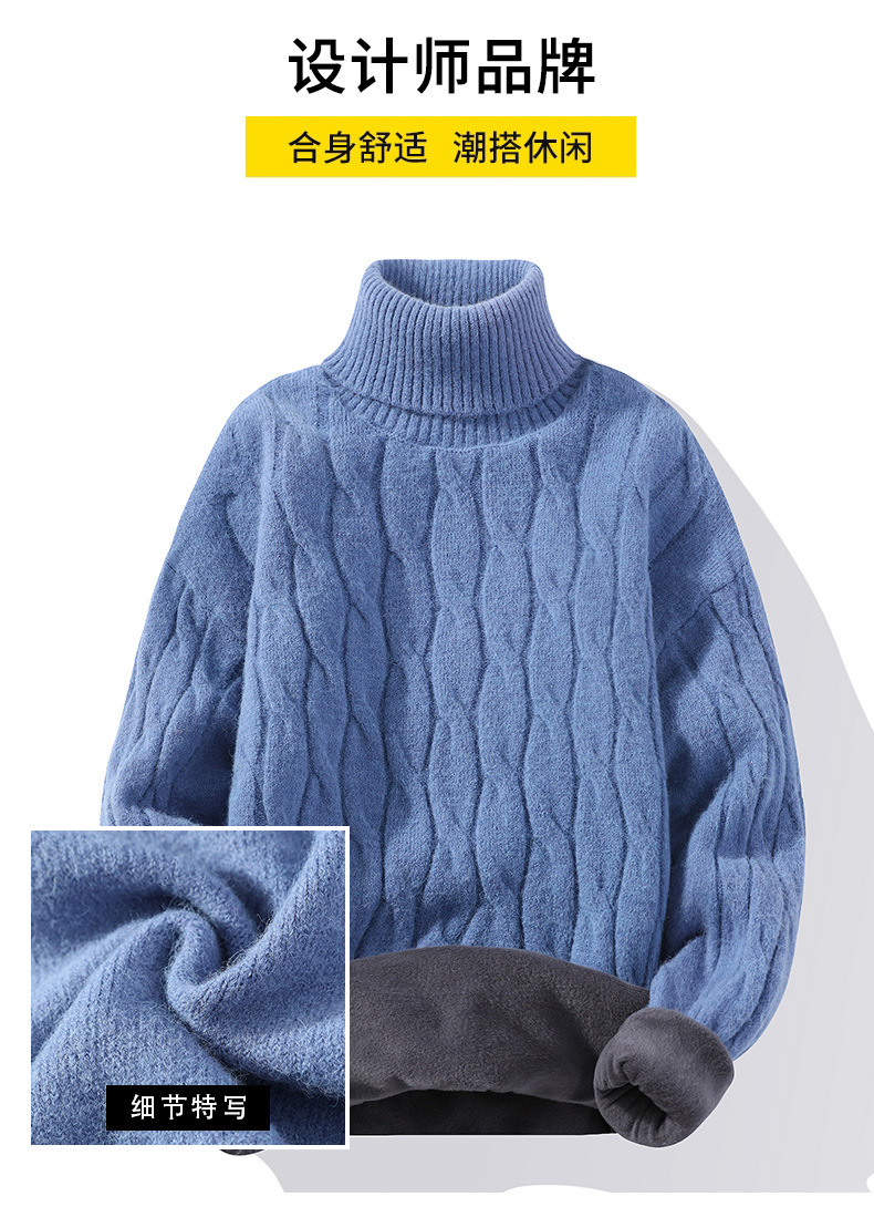2024 가을/겨울 새 기모 두꺼운 학생 따뜻한 니트 백 셔츠 남자 높은 목 멀티 컬러 올 매치 스웨터