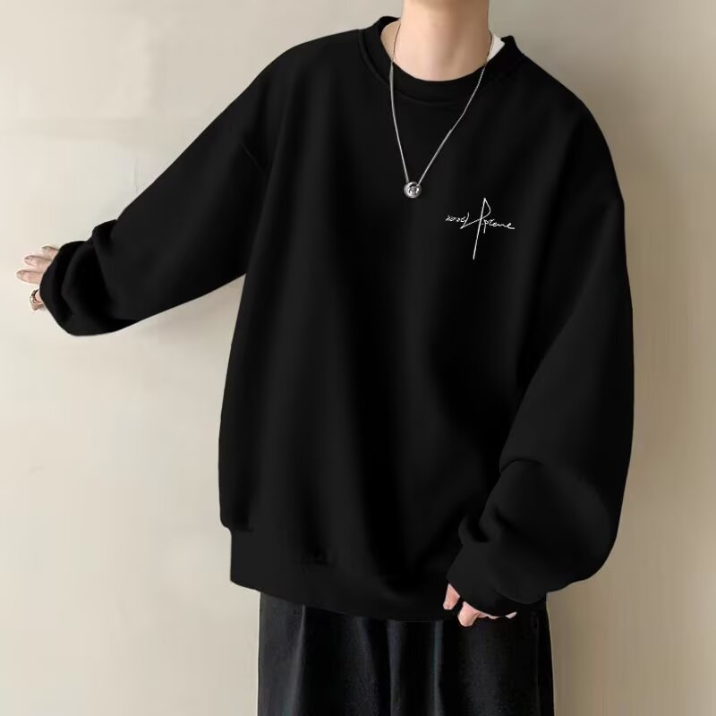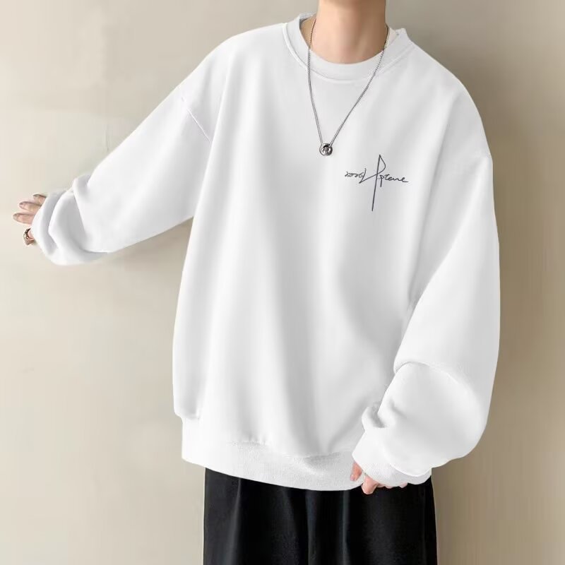 Crewneck Sweat 남자 2024 봄과 가을 새로운 패션 Ins 홍콩 스타일 간단한 느슨한 올 매치 캐주얼 탑
