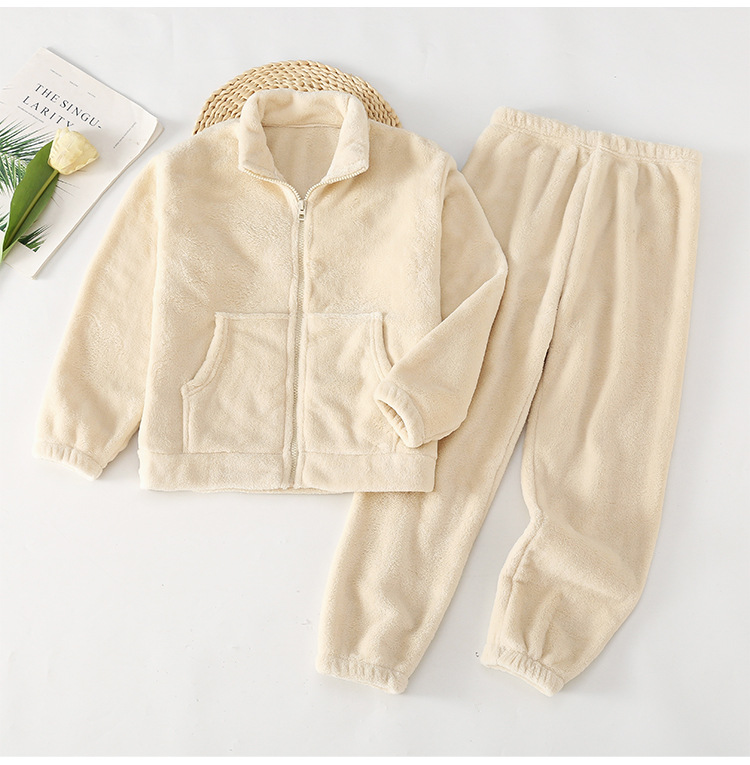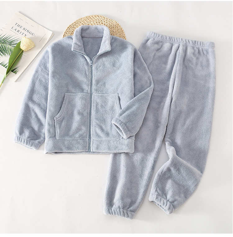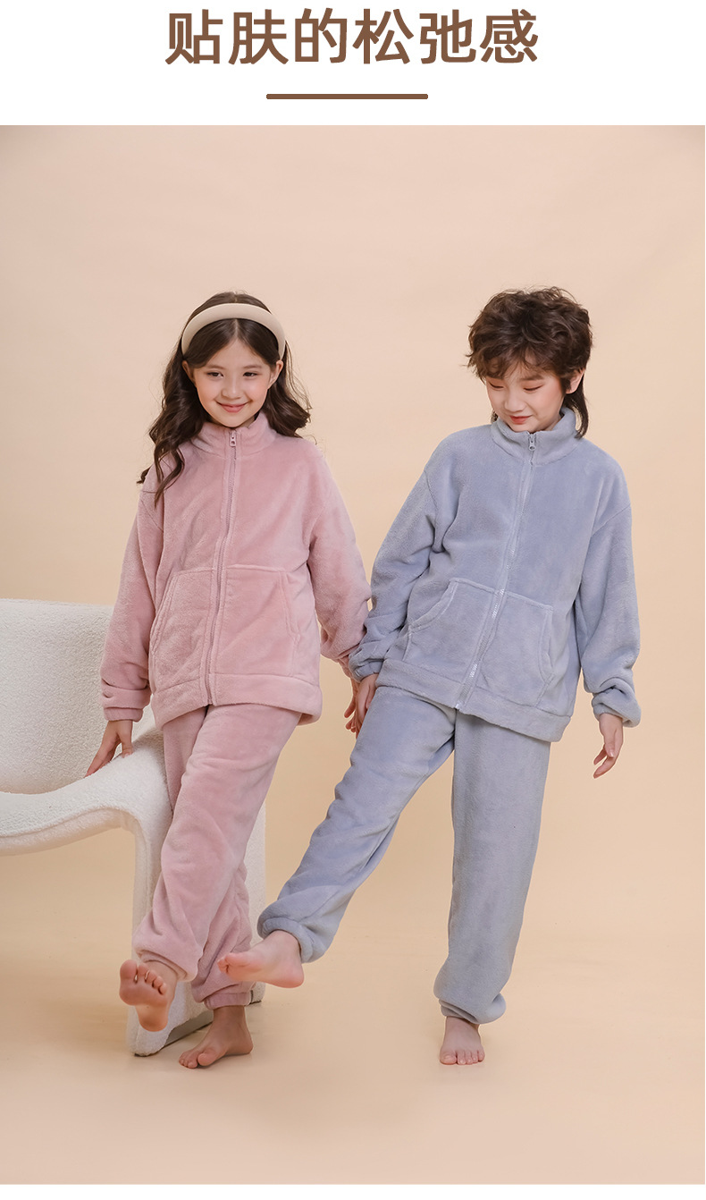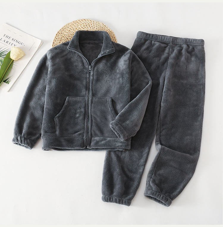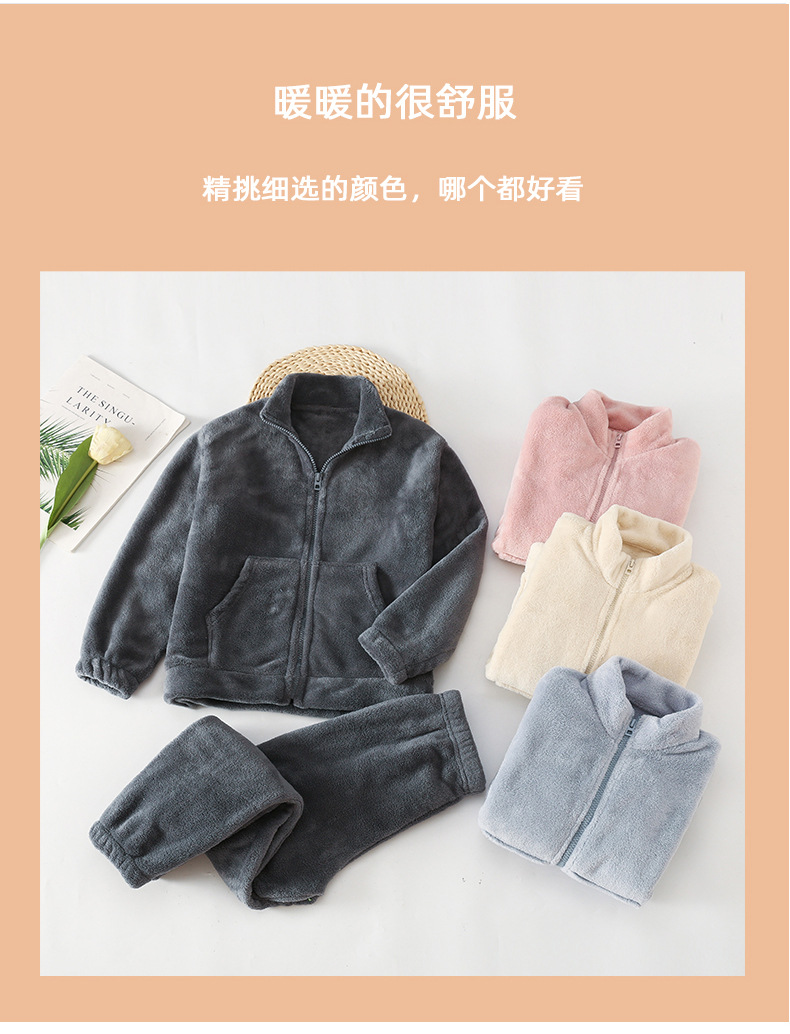 아마존 가을 겨울 신상 아동용 플란넬 잠옷 유아용 두꺼운 외출복 홈웨어 중대형 아동용 코랄 세트