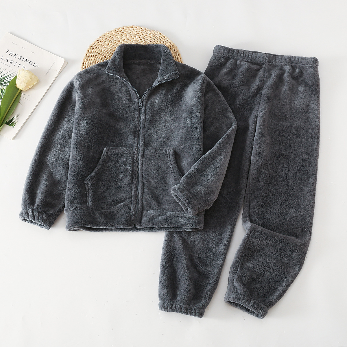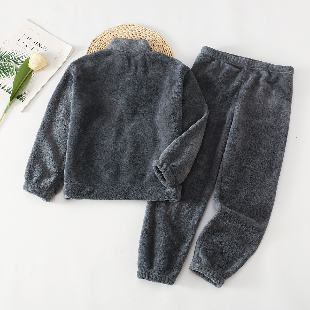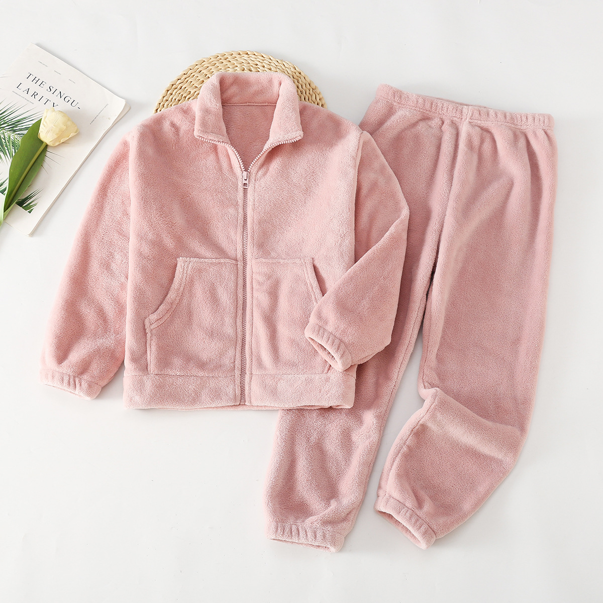 아마존 가을 겨울 신상 아동용 플란넬 잠옷 유아용 두꺼운 외출복 홈웨어 중대형 아동용 코랄 세트