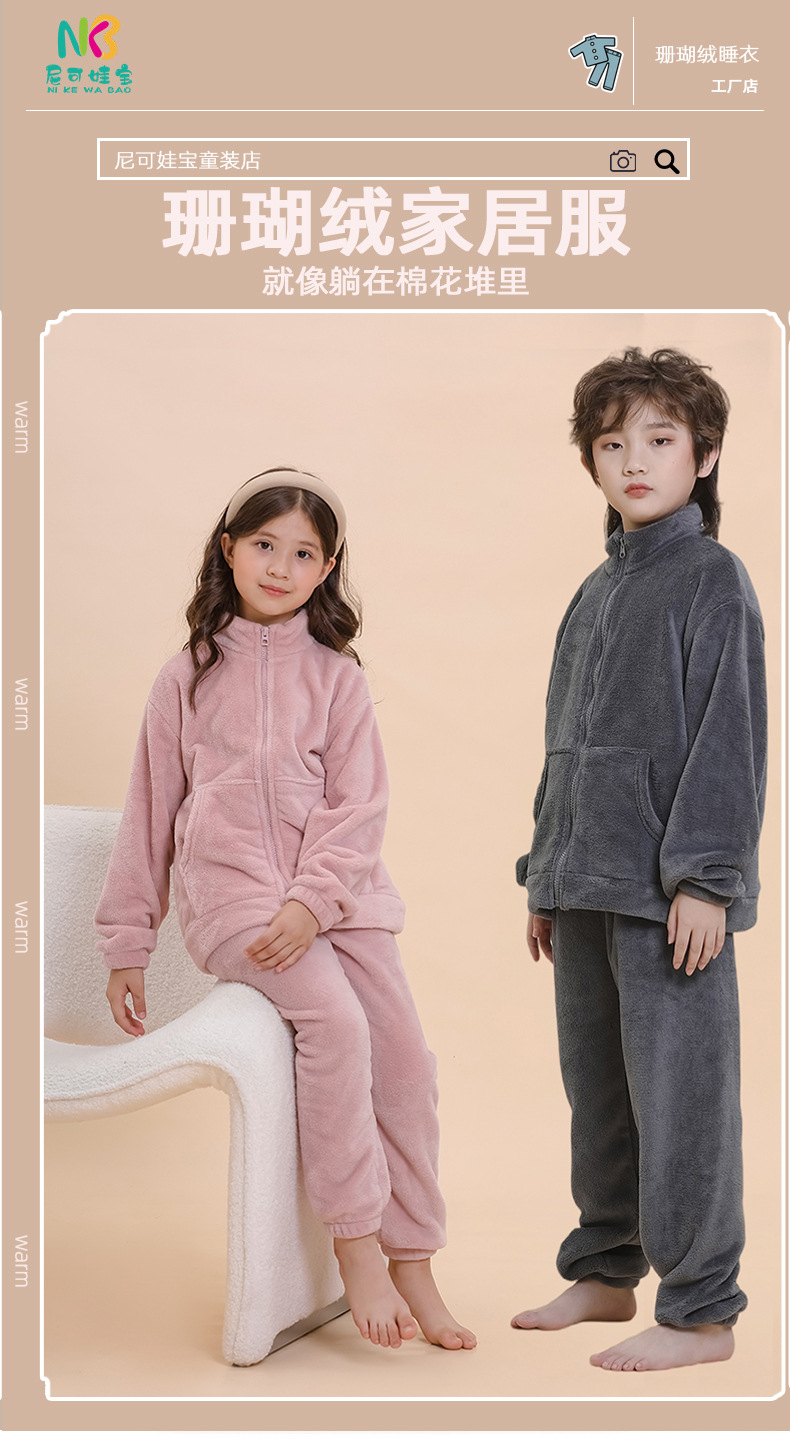 아마존 가을 겨울 신상 아동용 플란넬 잠옷 유아용 두꺼운 외출복 홈웨어 중대형 아동용 코랄 세트스토어 가기