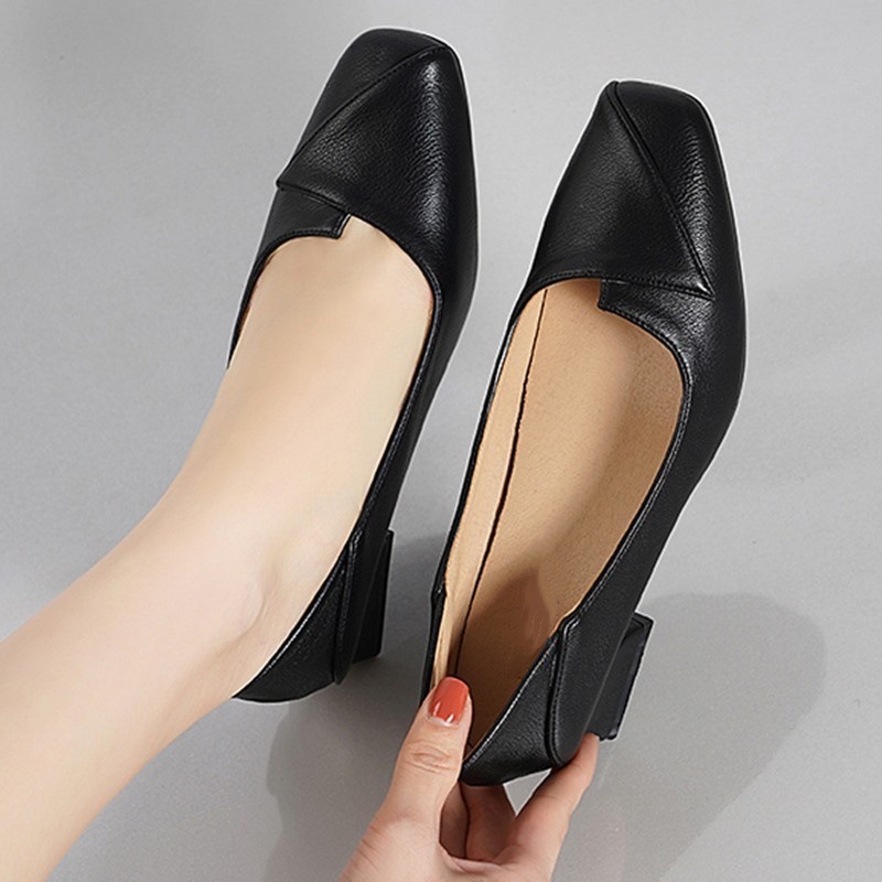 여성용 통근화 2024 봄 가을 신상 심플 투웨이 중굽 굵은 굽 스커트와 잘 어울리는 편안하고 다용도로 활용 가능한 컴포트 슈즈